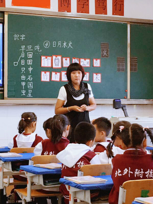 对于21世纪的六岁龄童,“日月水火”绝不再是以前的“没见过,不认识”那样浅显,因此认识它们已经不能成为本节的教学目标,而是在原认知基础上的拓展提升。识字对于一年级,王宇老师把培养学生对汉字的热爱,激发识字兴趣看得很重,以传说《仓颉造字》的一分多钟的短视频,让学生聚精会神地融入其中,了解到结绳记事到创造符号及文字的神奇过程。以“母、车、鸟”等象形文字的展示,让学生切实了解了象形字的由来。自然的过渡出口—日的变化,教学生用加一加的方法,给口这个已学的基本字变戏法,孩子们脑洞大开。把一个个与口有关的汉字“早、田、中、旦”等二十余字都变了出来,大大扩充了孩子的原认知,使每个孩子得到了不同程度的提升。
