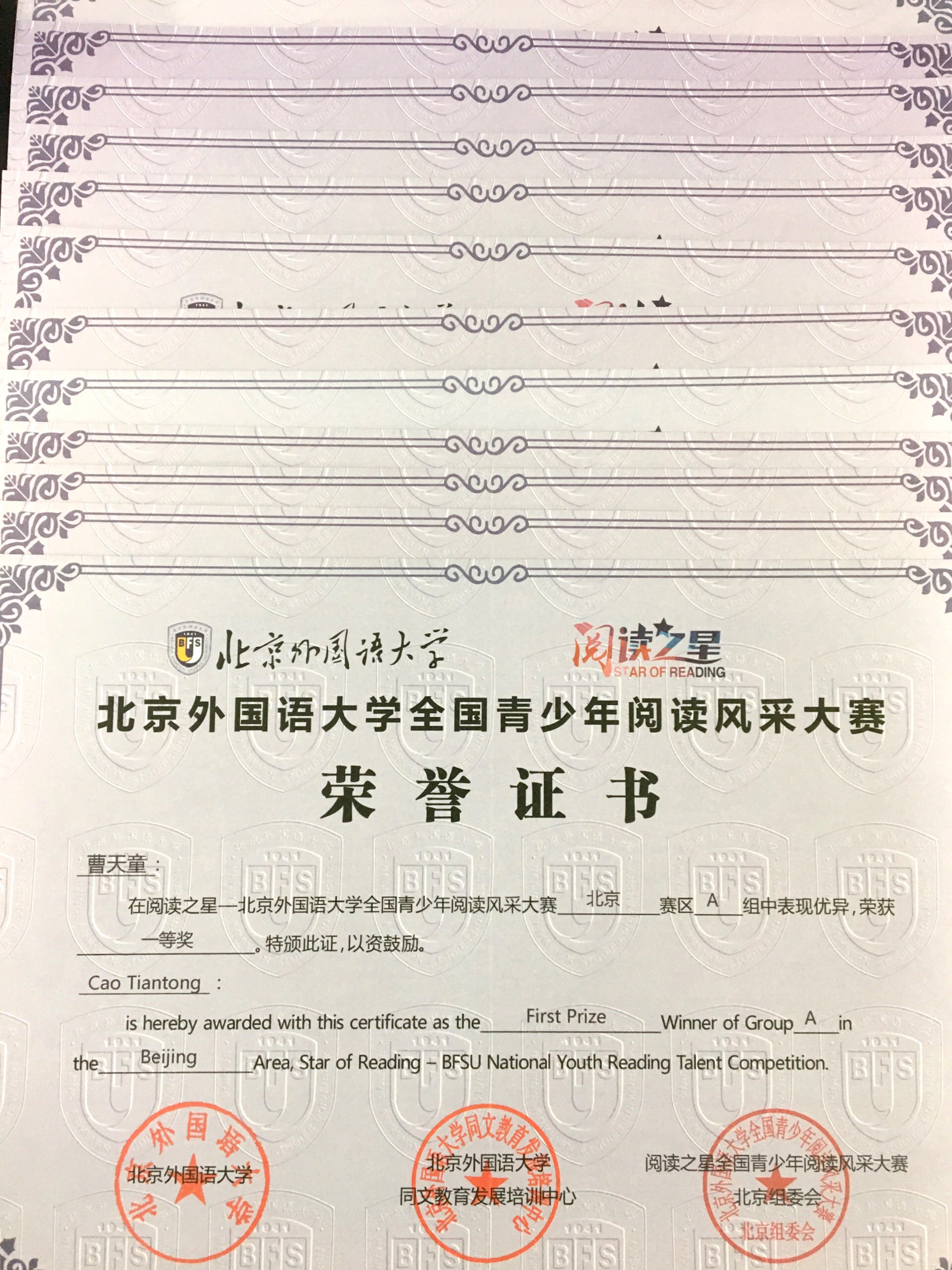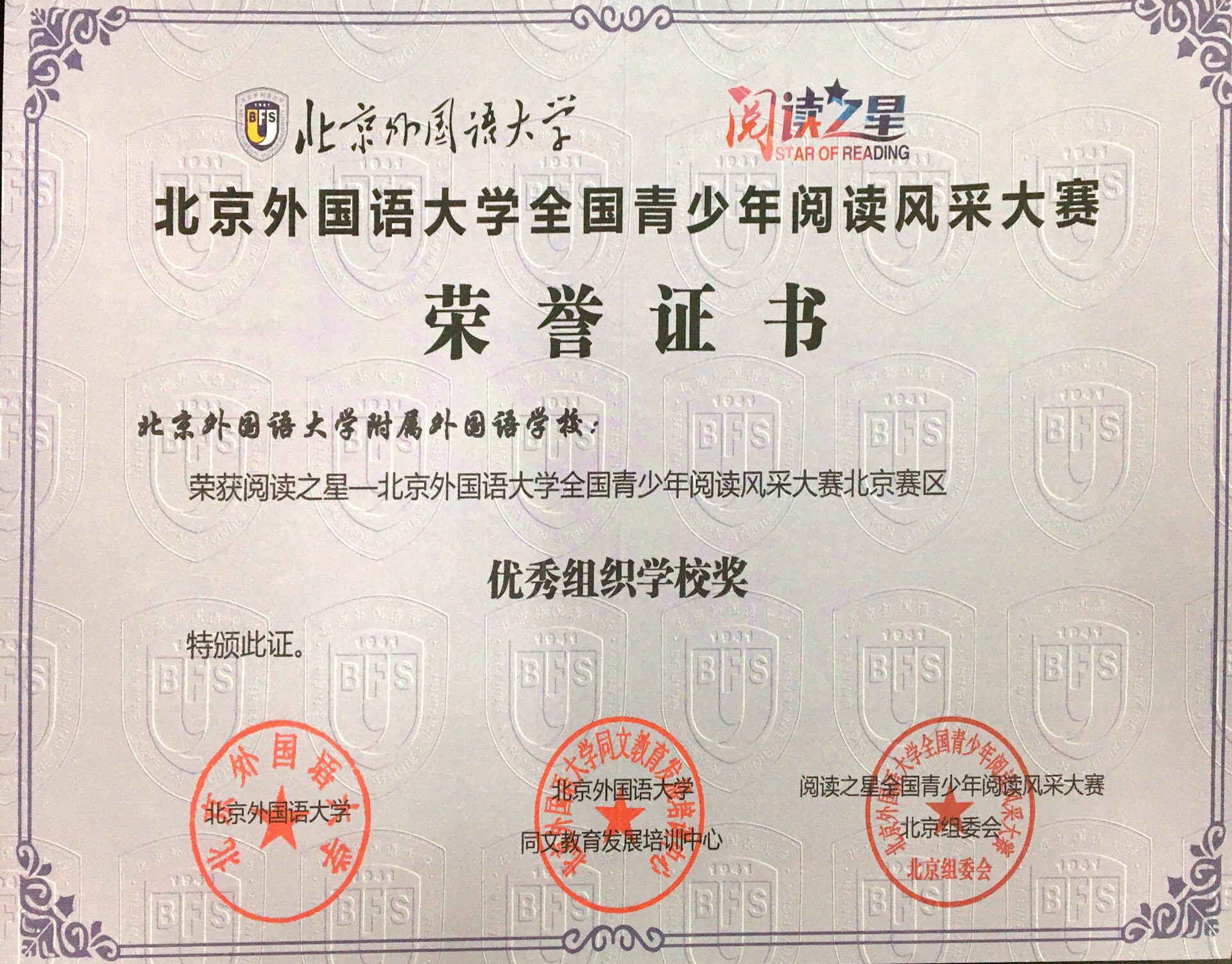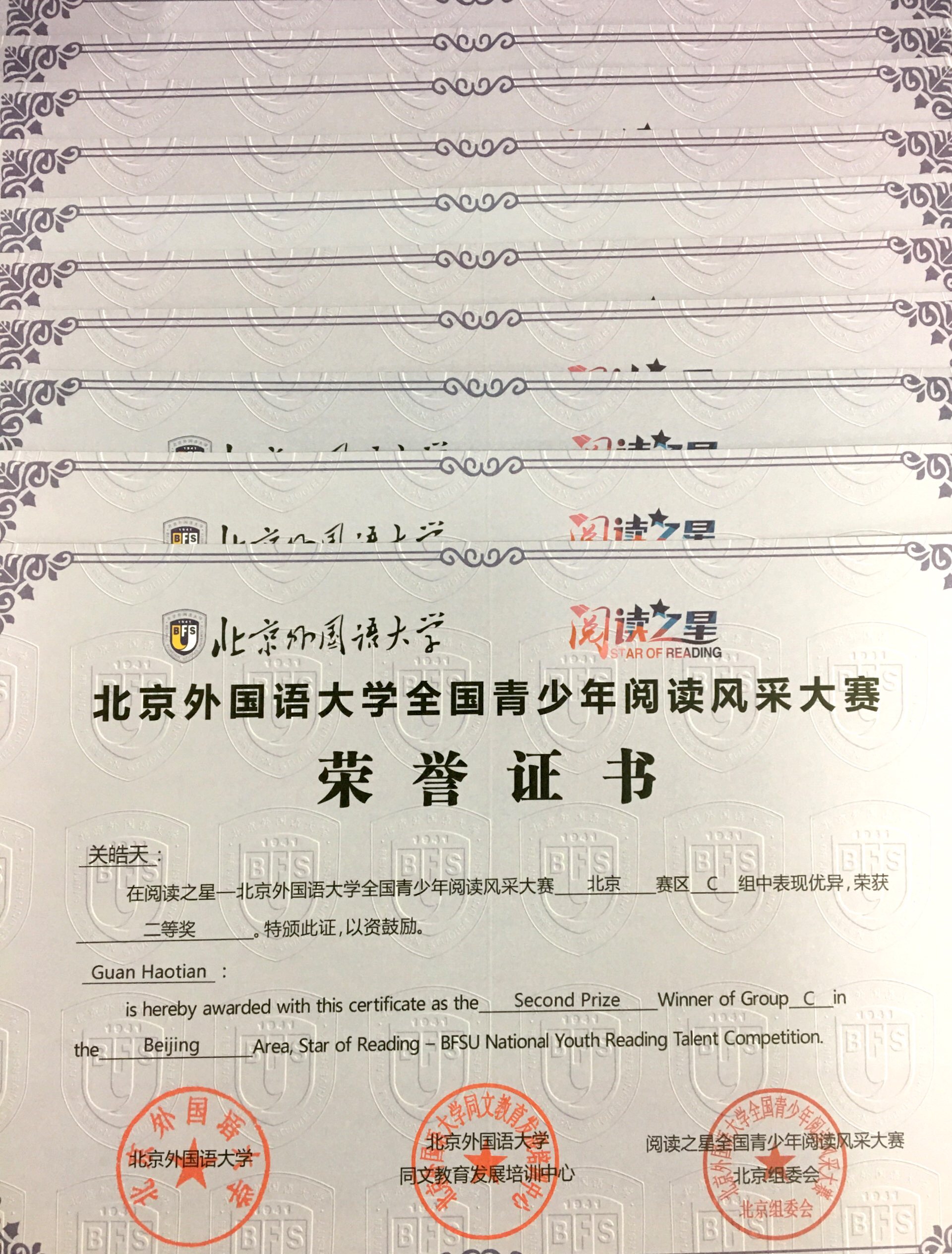 获奖学生:何宇翔,孙睿辰,袁佳熙,闫浚哲,杨泽霖,朱祉翔,冯钰珂,纪宇宸8名同学获得北京市级决赛“一等奖”;张孟桐获得市级决赛“二等奖”;周熙菲获得市级决赛“三等奖”;鱼铃沂,巴子为,杨舒钧,肖振奕,王晗喆,郑紫谦,崔欣儒,杨惠茜8名同学获得市级决赛“优秀奖”。