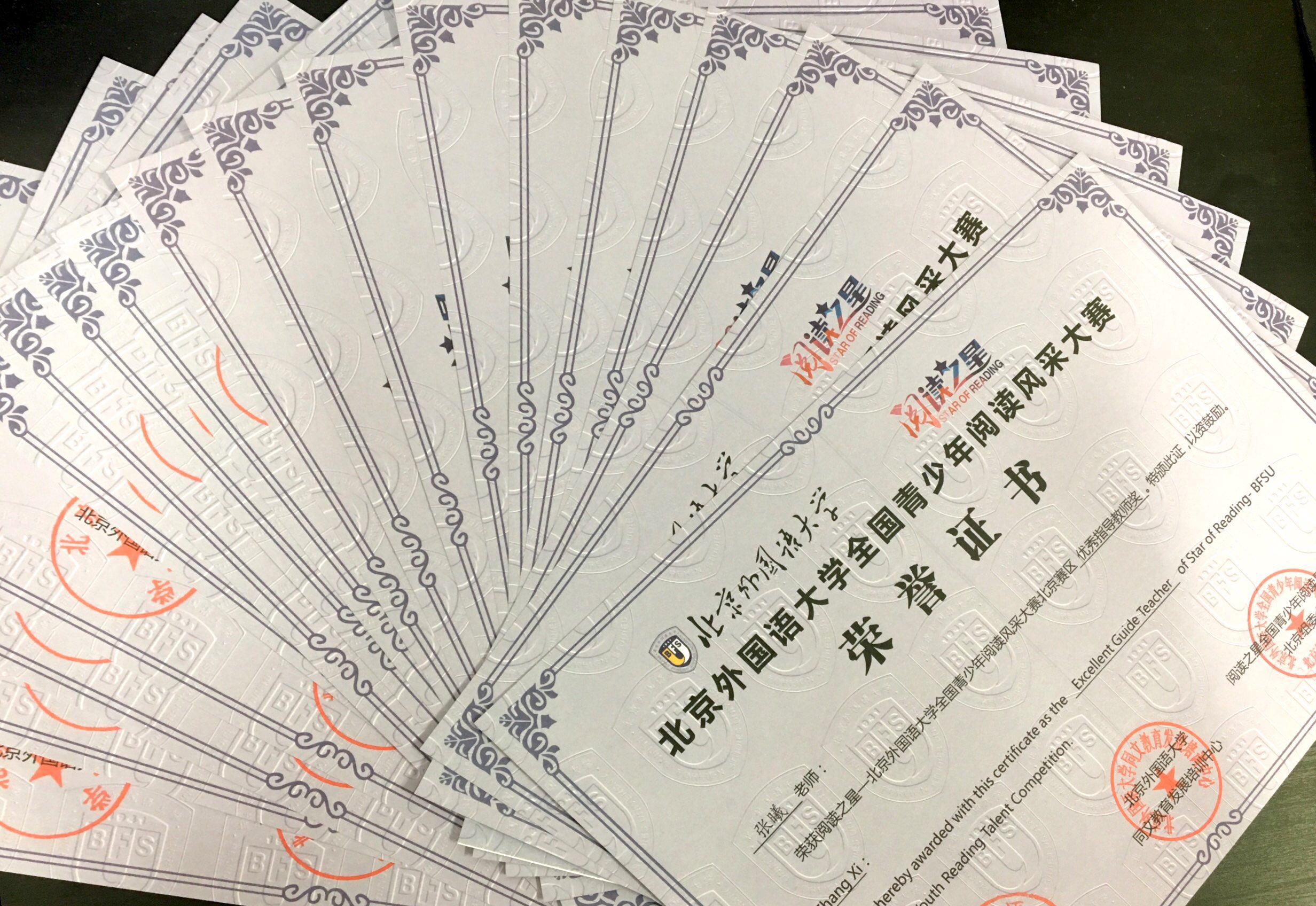 在2017年第十四届“外研社杯”全国中小学生英语大赛个人技能赛全国总决赛中,我校小学生在老师们的指导下表现优异,何宇翔,袁佳熙等18名同学在比赛中取得了优异的成绩,同时我校杨瑞欢,李文霞等25名老师获得优秀指导教师奖。
