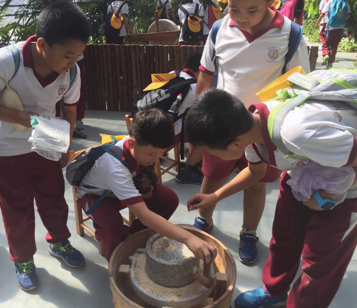 汉风耕读苑以汉代风格为主调,以文化长廊、国学讲堂、非遗手工坊、躬耕园、萌宠动物园等景观为依托,形成了一处文化穿越体验,孩子们还在这里体验了植物扎染,古代舂米屯粮,葡萄酒文化等生活,生动的课堂就在孩子们的体验时,也在孩子们的行走中。