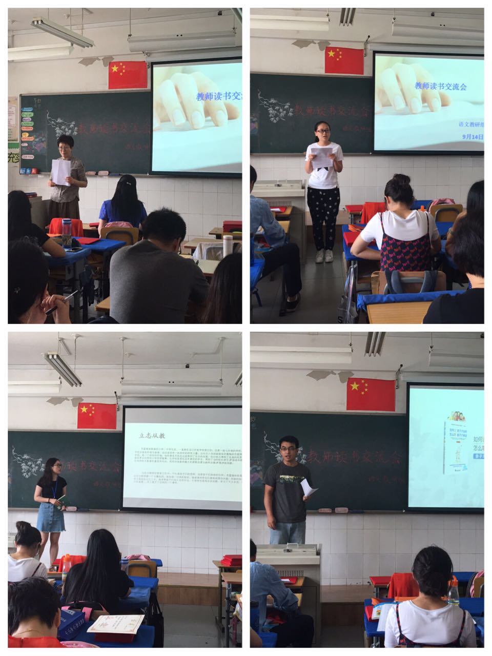 9月14日下午,小学语文组举行了教师暑假读书交流汇报的活动,6位老师进行了精彩的发言。