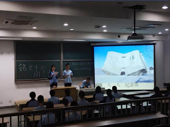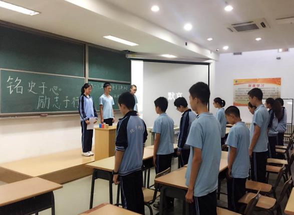 北京,天安门广场,人民英雄纪念碑前,人们伫立凝神,聆听镌刻在汉白玉上的历史回声;沈阳,“九一八”历史博物馆,一份份新解密的文件,讲述着抗联战士奋力救国的传奇;今天是“九一八”事变86周年,为进一步弘扬爱国主义精神,激发学生们的爱国热情,初三(3)班召开了以“铭史于心 励志于行”主题班会,铭记国难、勿忘国耻,奋发向上,振兴中华。