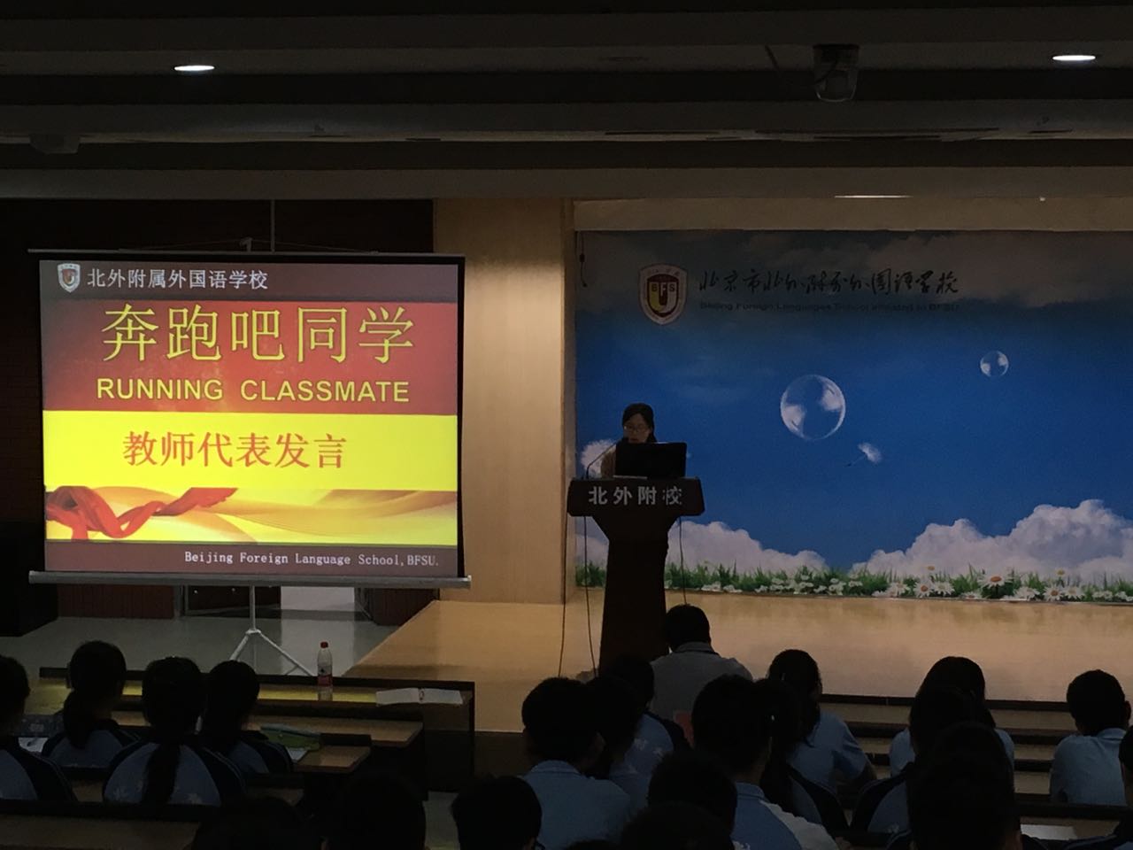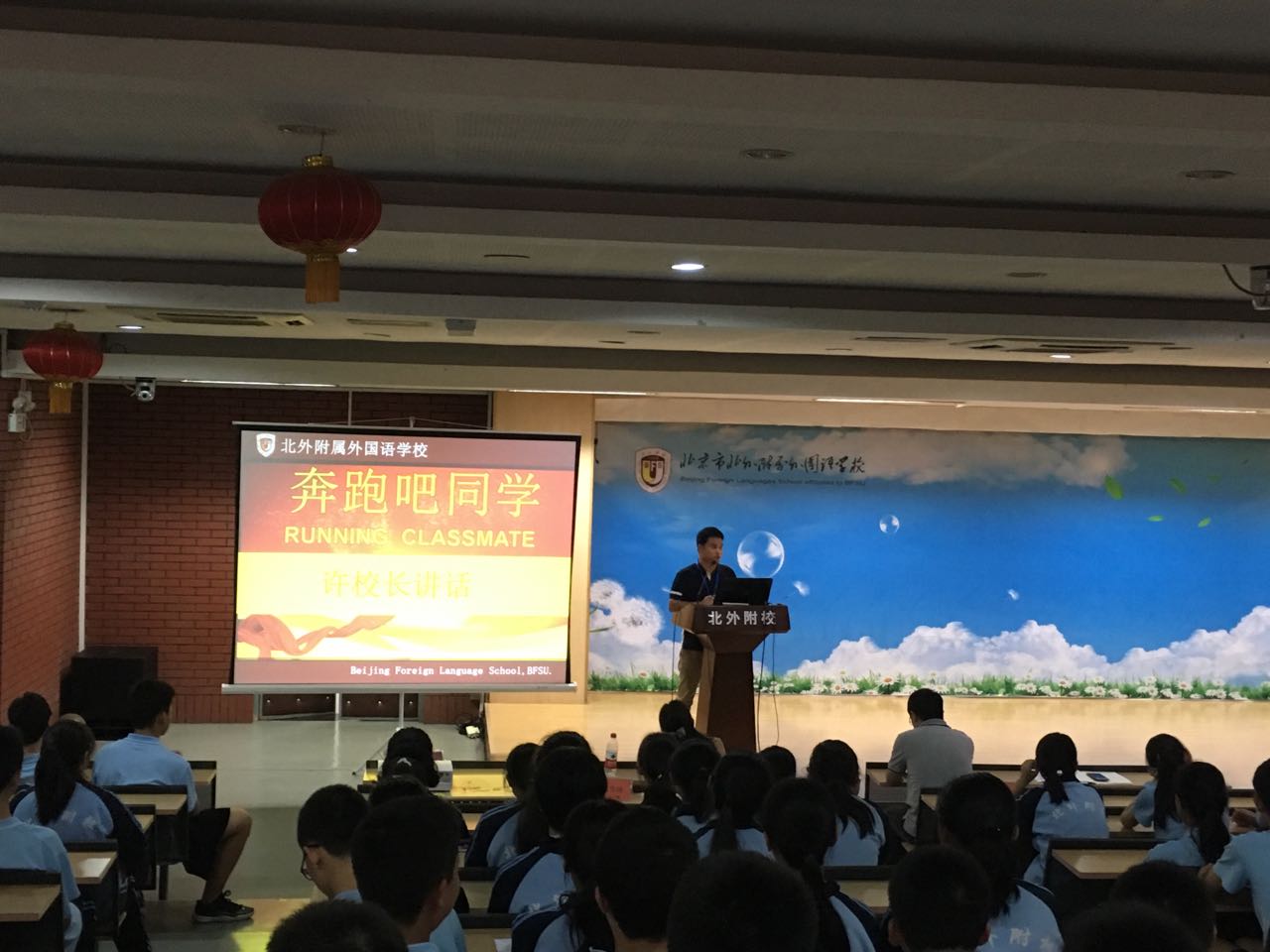 也正因如此,有人说初三的天空是灰色的。我说,这是懦者的论调。纵然学习紧张,但只要有平和积极的心态,你会发现初三的生活比雨后长虹更加缤纷多彩。子曰:知之者不如好之者,好之者不如乐之者。快乐地投身其中,沉醉其里,你会发现,在这短短一年里,有黎明即起、朗朗诵读的朝阳金;有专注课堂、挑战自我的冷静蓝;有奔跑操场、挥汗如雨的青草绿;有挑灯夜战、疯狂刷题的拼搏红;有同窗鼓励、家人呵护的温馨粉;当然,还有我们北外附校的领导和教师团队给你们的透明爱。不论何时何地,你抬首望前方,会发现我们在为你们指引方向;放眼左右,会看到我们在帮你们调整航向;回眸身后,依然有我们,在为你们保驾护航。不管艰难险阻,雨露风霜,始终有我们,陪伴在你们身旁!所以,同学们,放平心态,锐意进取;失意时不焦躁,得意时不骄傲;持之以恒,积跬步以至千里,常抓不懈,夯小石以筑固堤。这样,当你们回顾这一段青春岁月之时,会发现它不只是你苦心孤诣的青春史记,更是我们一起沥血战斗的思想传奇,色彩斑斓,无比美丽。