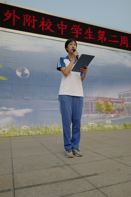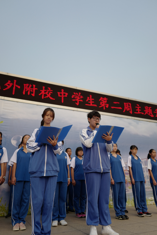 9月4日上午,我校举行主题为“尊师重教感念师恩”的中学生第2周升旗仪式。本周升旗仪式领唱国歌的班级是高一(1)班,升旗手为陈艺頔。双语主持由高二(4)班张宇霏、高三(2)班宋以声担任。
