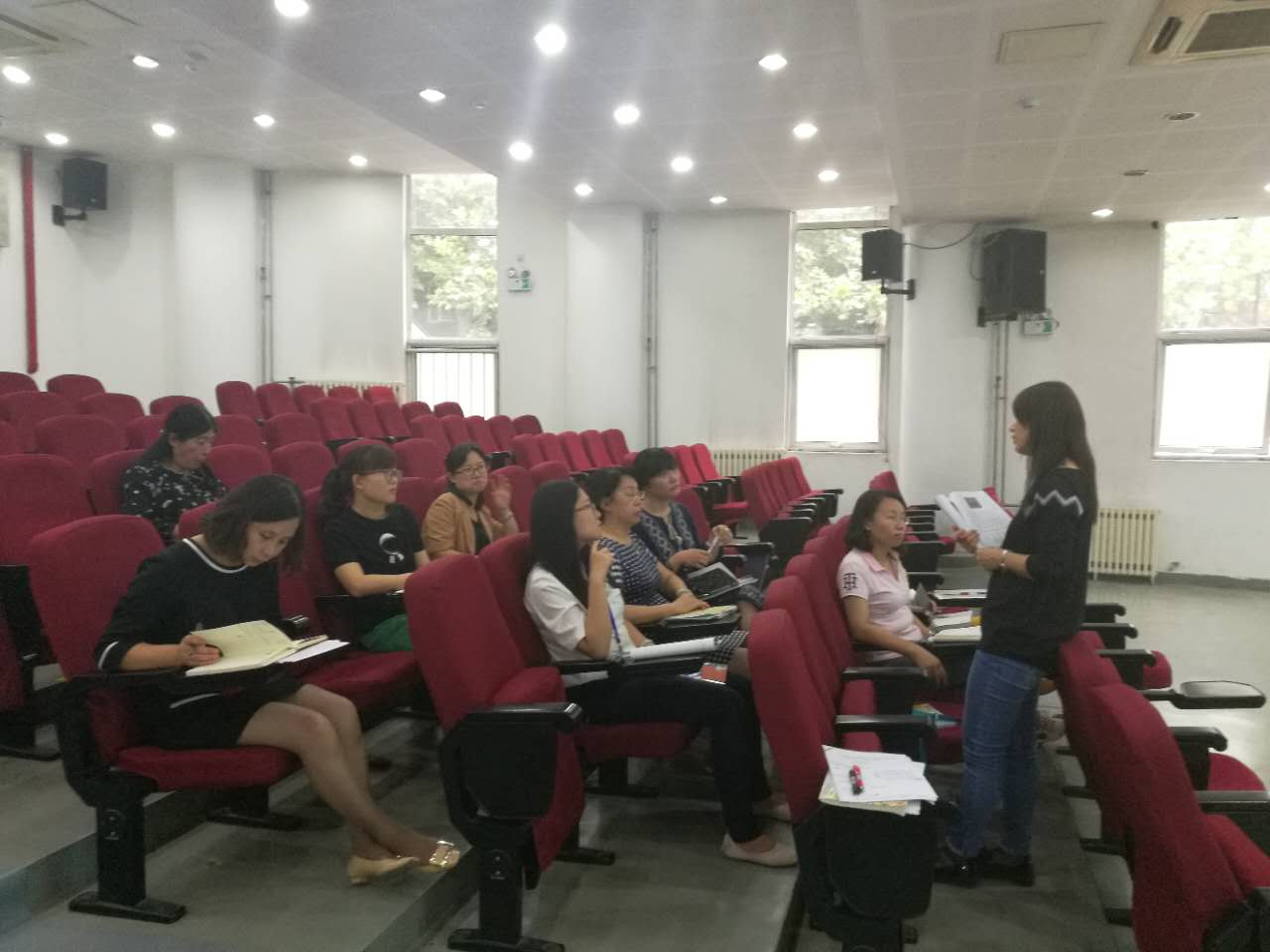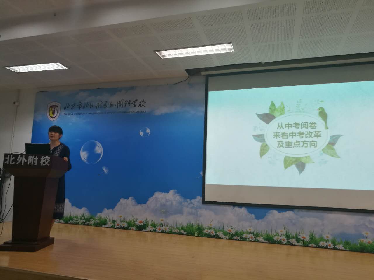 首先耿天怡老师做了“从中考阅卷来看中考改革及重点方向”的经验分享。耿老师以北京市2017年中考题为例,从书法、语基、文言文、散文阅读、写作等五个方面和大家进行了交流,既指出了新课改和中考改革形势下考察重点的变化,同样也为大家的教学提供了切实可行的建议。同时这也对大家的课堂教学提出了新的思考:教师如何关注阅读和学生核心能力的培养?如何落实语文实践活动?文言文学习尤其是课外文言文的现实功用是什么?学生自主学习和创造性思维如何培养?最后教研组长王老师在总结时,特别提到初三老师一定要特别关注语文试卷分值变化带来的试卷结构的改变,以及教学内容的调整。