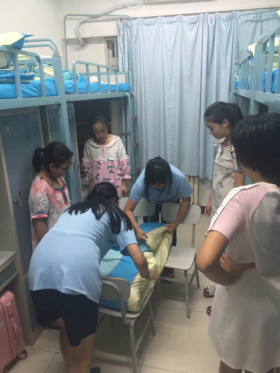 开学初期间,学校开展多种形式的“初一、高一新生宿舍生活技能实践培训”,高中军训教官、初一、高一年级班主任、生活指导老师进入新生宿舍进行宿舍实践指导,对于床铺要求、物品摆放等具体内容进行指导规范,初二、初三、高二、高三年级的学哥学姐们来到初一、高一新生的宿舍里,对新生进行热情地指导帮助,宿舍技能实践现场一片热烈温馨的场面。