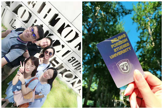 随后,同学们又漫步校园,细细欣赏雨后的校园美景,每个同学的脸上都流露着惊喜,仿佛探索到了他们心中的外语梦。带队老师给同学们布置了一项“任务”,在整个校园内,寻找自己所学的语种,找到这些语言的痕迹并跟它们合照。开始学生们都觉得很艰难,觉得小语种在生活中并不是随处可见。可是经过了半个多小时的细心寻找,同学们发现原来小语种已经深深的浸入了我们的生活,从德国的汽车,到西班牙的面包,再到韩国的咖啡。不只是外语文化随处可见的北外,甚至在普通人的生活中,这些语言的印记都随处可见。同学们纷纷与自己所学的语言合照,出色地完成了任务。