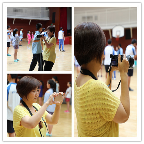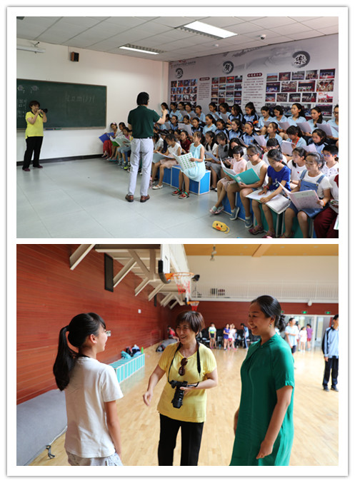 随后,在纪芳主任的带领下,孔导演参观了我校校园及艺术中心办公室和剧照展墙,并对艺术中心的工作环境赞赏有加。接下来,又饶有兴致地观摩了我校“Sunshine艺术团”合唱团的假期集训和校园集体舞的排练。