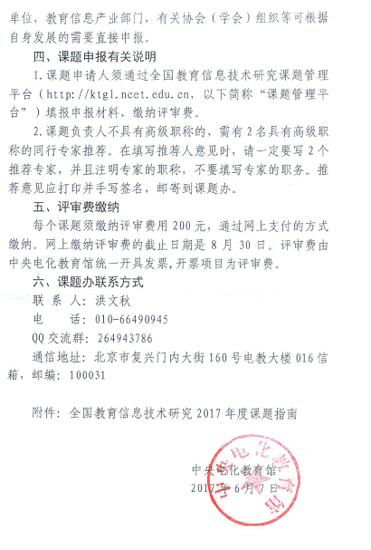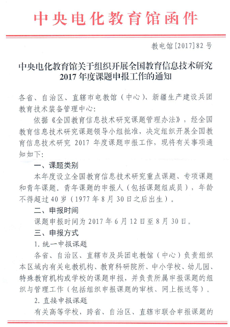 2.中央电化教育馆关于组织开展全国教育信息技术研究2017年度课题申报工作的通知