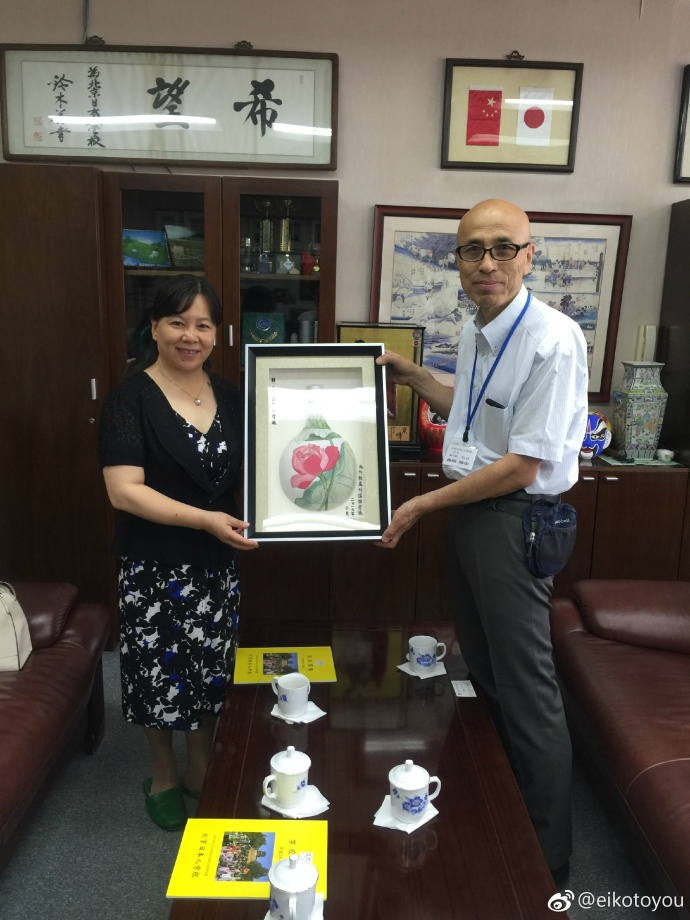 在校长室,张继军代表学校向奥田校长赠送了我校学生的美术作品。在友好的气氛中,双方就两校学生的交流交换了意见。张继军提出,双方可以开展师生互访、课堂体验等形式多样的交流活动,并邀请奥田校长来我校访问。奥田校长对此表示感谢。他说,北京日本人学校很乐意与我校探索交流的形式,为日本学生提供国际交流机会。