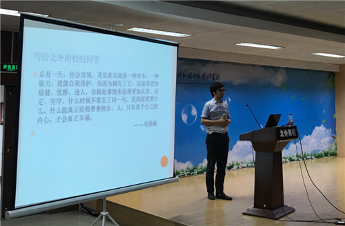 在此次讲座上,刘老师以青春期心理健康教育为出发点,深入浅出地引导学生们在成长中正确认识自己的身体和心理变化,对处于青春期的学生普遍存在的敏感、易怒、烦躁、心理脆弱、情绪波动大等心理健康问题进行了解读,并引导同学们学会正确看待问题和处理自己的情绪。刘老师利用互动的形式、列举生活中的事例、结合形象的图片,讲解了青春期男孩和女孩在生理和心理方面的一系列变化,以“异性交往”这一问题为例,让学生认识到男女同学之间正常交往的必要性以及如何与人交往,引导学生正确对待自己的青春期,帮助学生解开心中的疑惑、缓解青春期的学习压力。刘老师的讲解深情并茂,他活泼开朗的性格、夸张有趣的肢体语言、丰富的游戏活动深深的吸引了学生们的注意力,巧妙地把学生带入到自己所要讲述的话题中去。整个讲座过程中,学生们听讲认真,情绪高昂,获悉了许多心理健康知识,学会了正确认识自己的心理,懂得如何在学习生活中与人交往,认识到了要用积极乐观的态度创造丰富充实的人生。