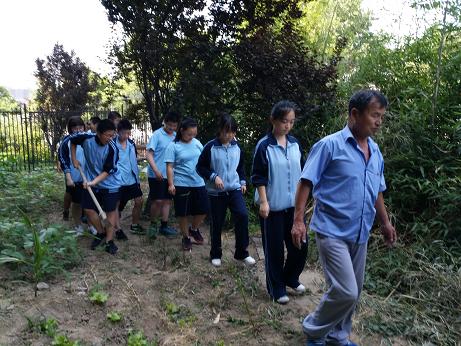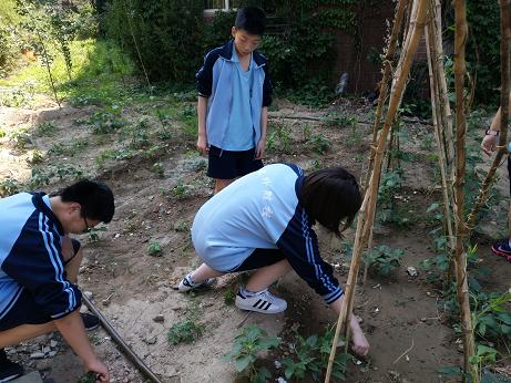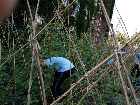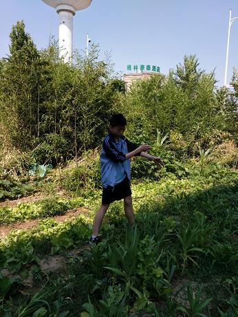 在开心农场里,同学们兴趣高涨,首先听姜老师讲了有关五十年代上山下乡的故事,然后又开始了农场劳动。一人一拢田,然后比赛拔草,看谁拔的快!然后同学们又采摘过季菜,为后面的时令菜的耕种留下空间。