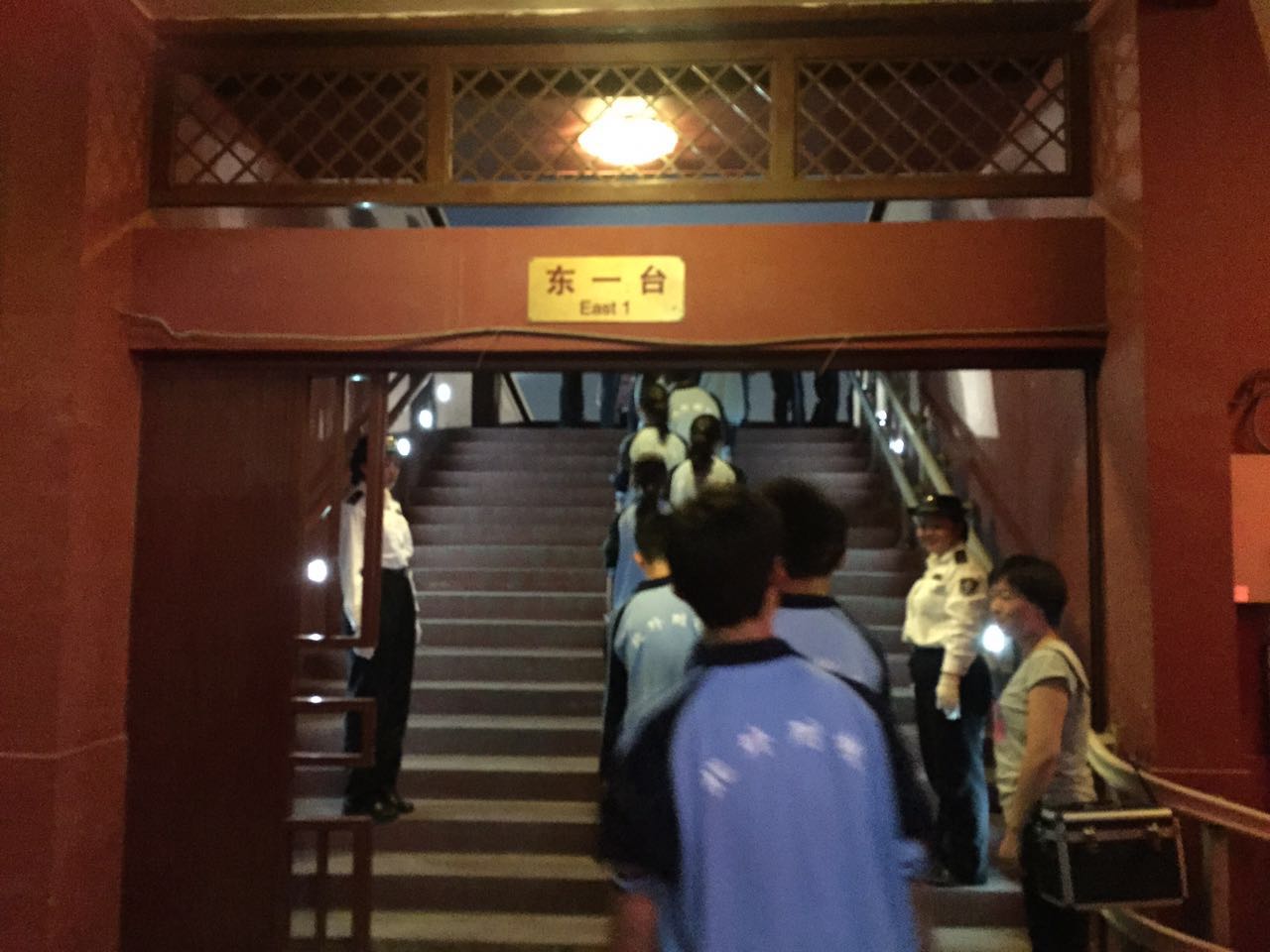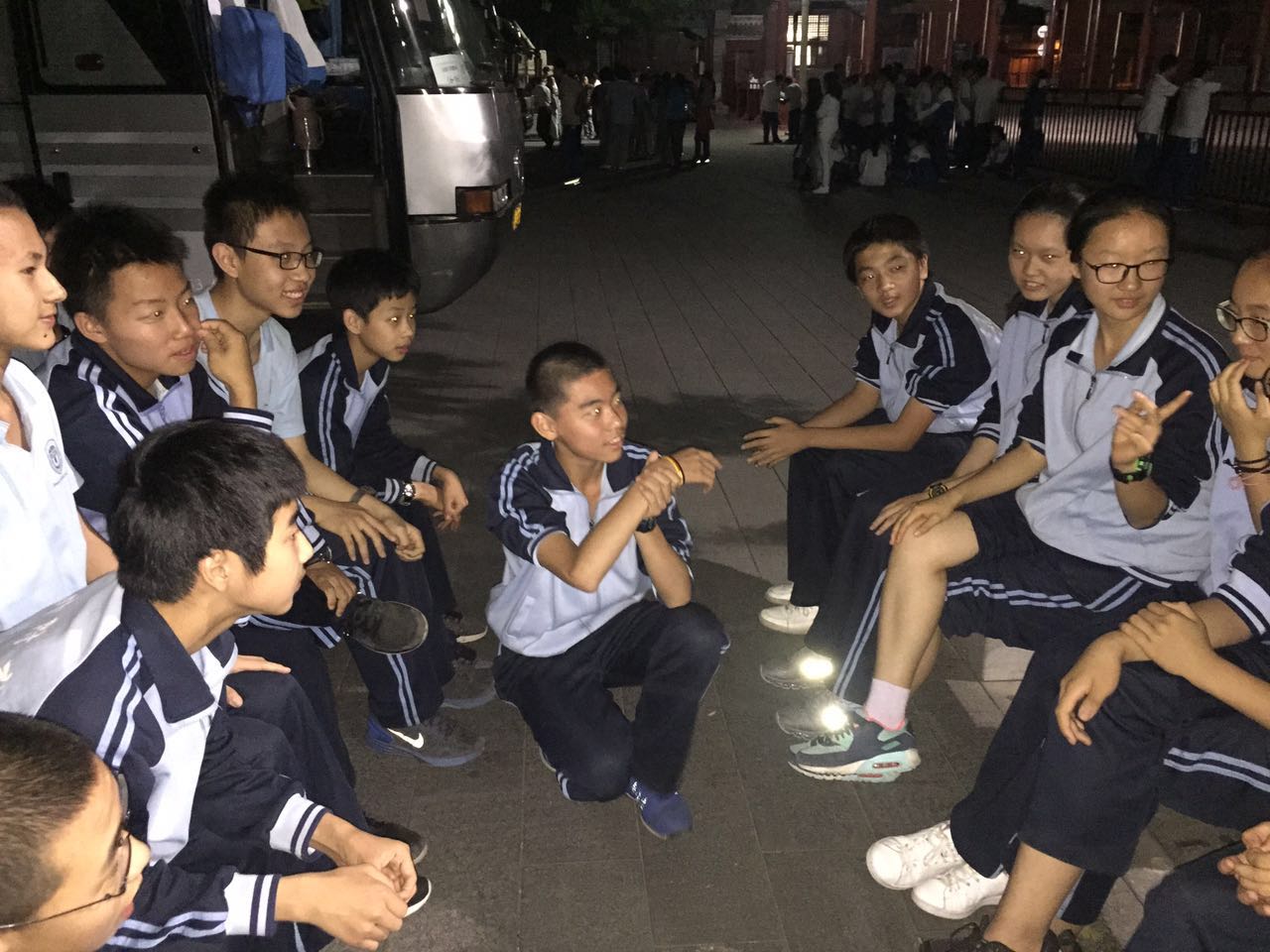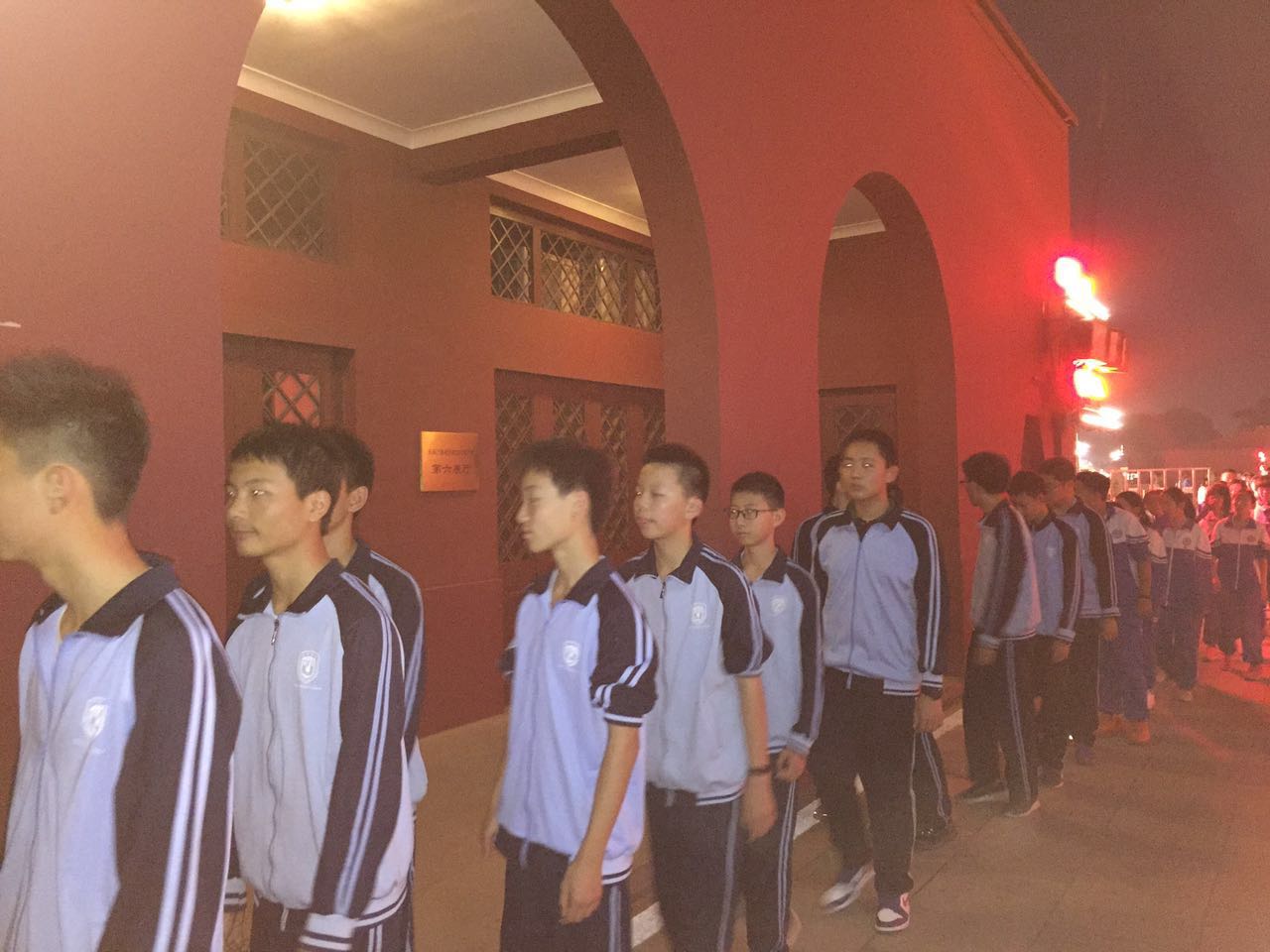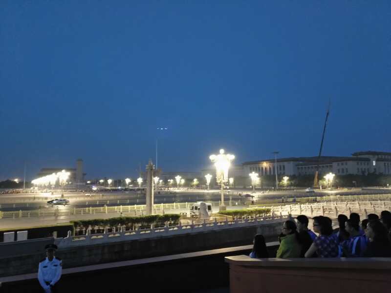 6月16日凌晨1点20分,在静谧的校园里,初二年级的同学们已经集合完毕,大家迅速排好队依次上车,向着天安门进发。凌晨2:40左右,全体同学乘车到达天安门广场。大家听从现场工作人员的指挥,全程保持安静,秩序井然地通过安检,在广场中列队站好,展示了我校学生的良好风范。等待过后,同学们终于怀着激动的心情踏上了天安门观礼台。天安门的升国旗时间与每天日出的时间同步,随着灰暗的天空被初生的太阳点亮,东方泛起鱼肚白,离升国旗的时间越来越近。望着颜色渐变的天空,同学们露出了期待的神情。