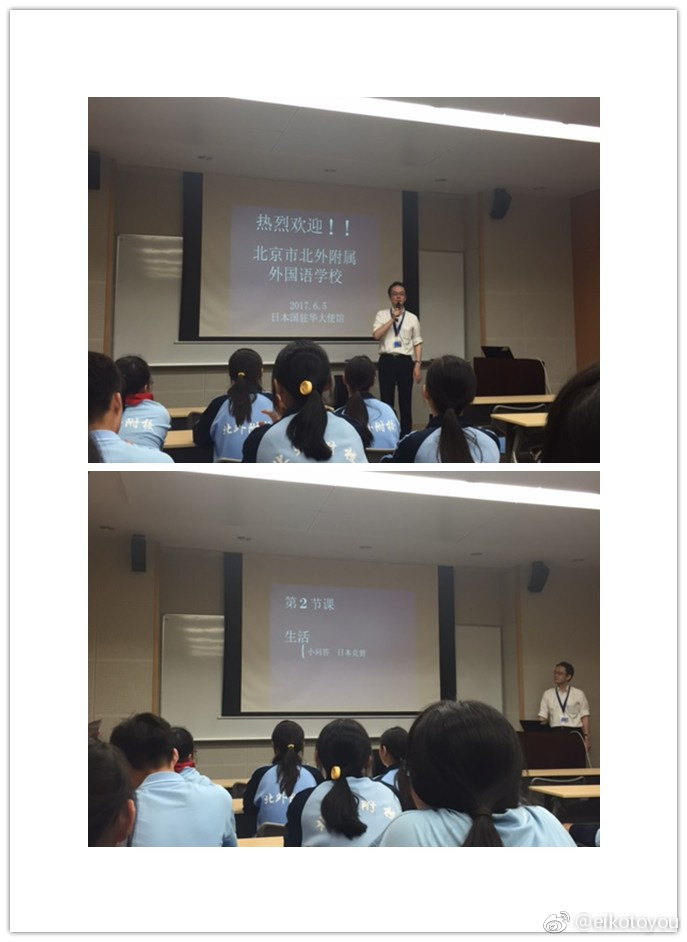 为了开拓学生的国际视野,增加异国文化体验,在校领导与日本使馆官员的支持与关怀下,2017年6月5日下午,我校初一、初二部分日英复语班学生走进日本大使馆进行研学体验活动。本次参观活动由我校初中副校长许祥带队,得到了使馆方面的高度重视与热情接待。