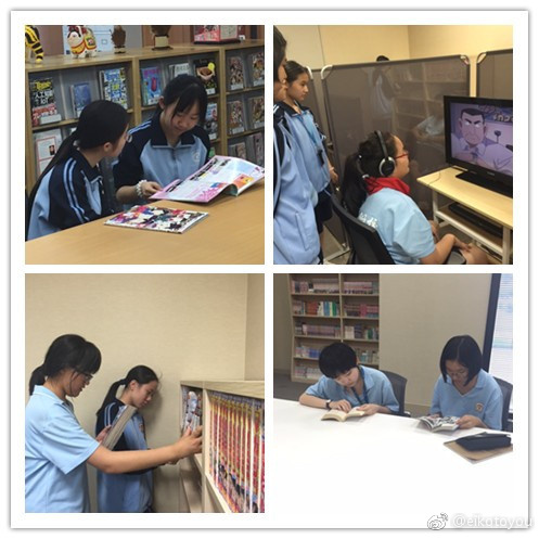 此外,在新闻文化中心的图书馆,同学们还欣赏了室内摆设的日本人偶、日本漆器等日本特色展品,阅读了日文原版图书,观看了日文原版动漫。