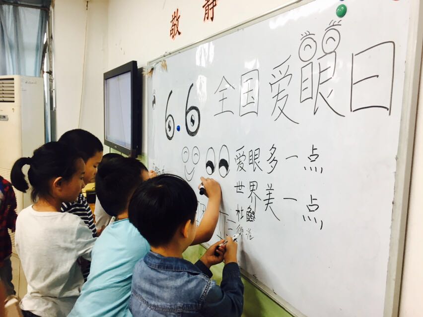 活动结束前,孩子们在画纸上绘画出一双双美丽的眼睛,并在讲台前签下了自己的名字,增强了孩子们的爱眼意识。
