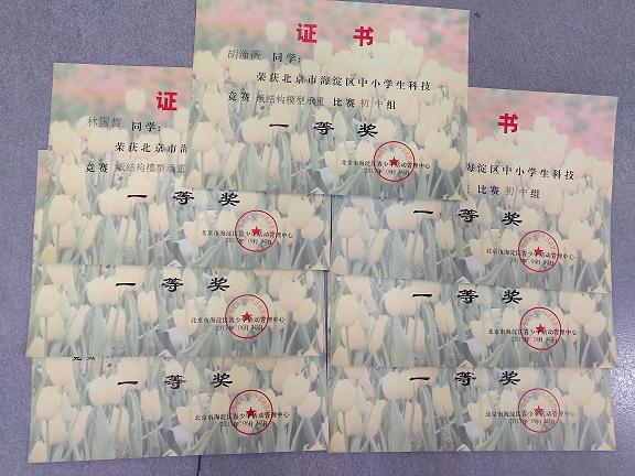 2017年5月,我校初二年级进行了海淀区纸结构承重分赛场的比赛。