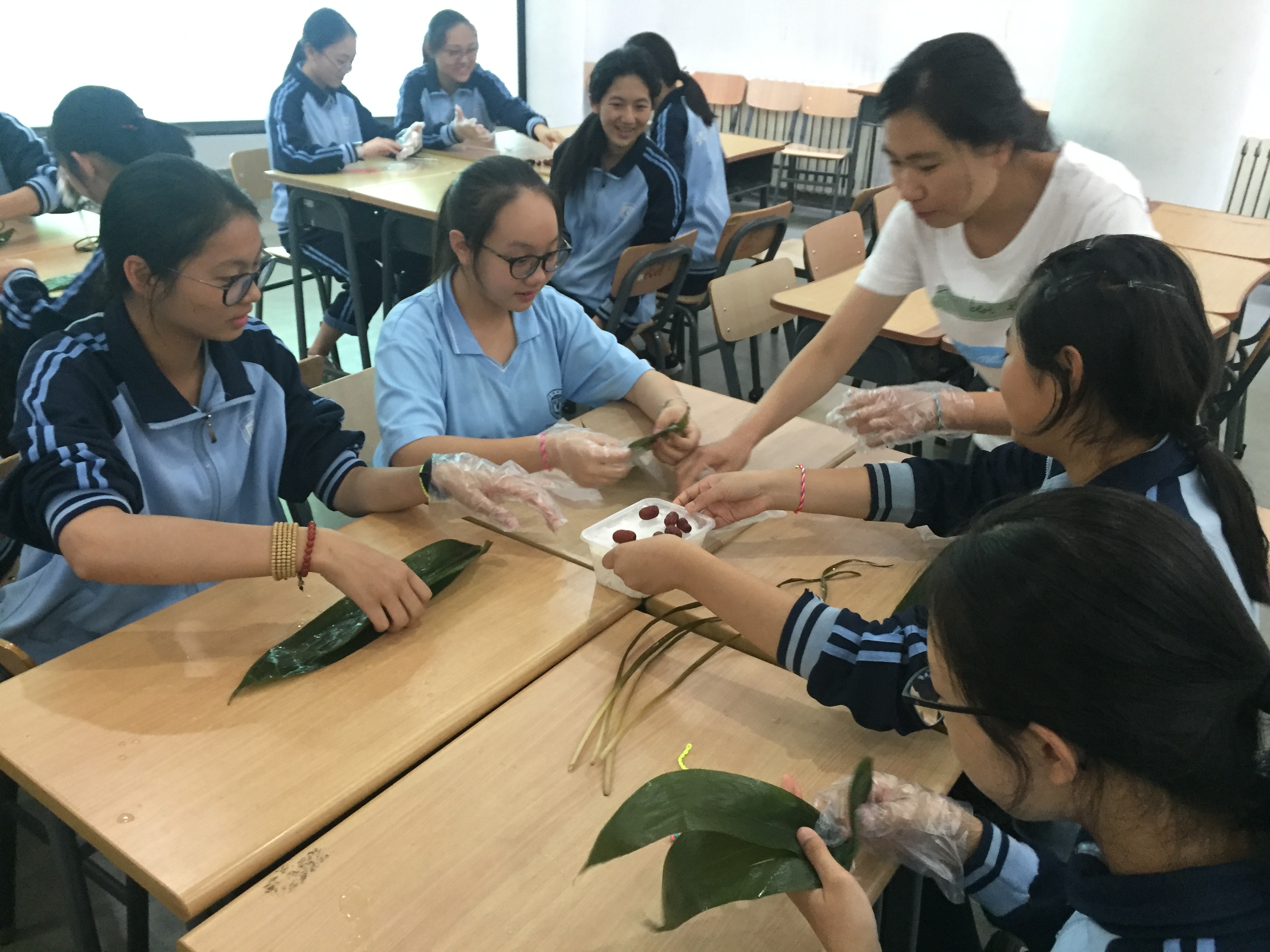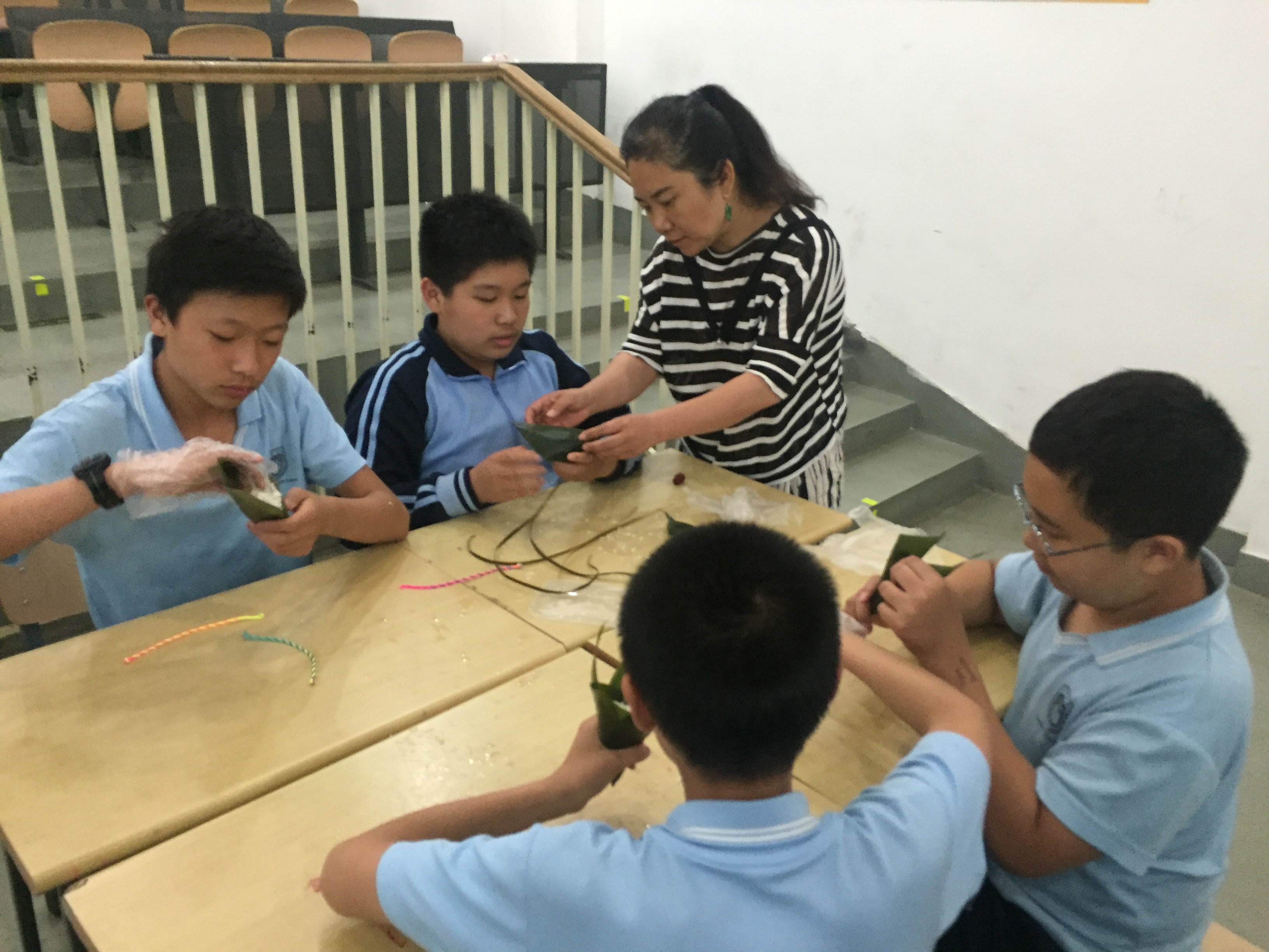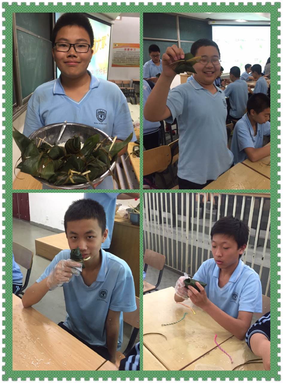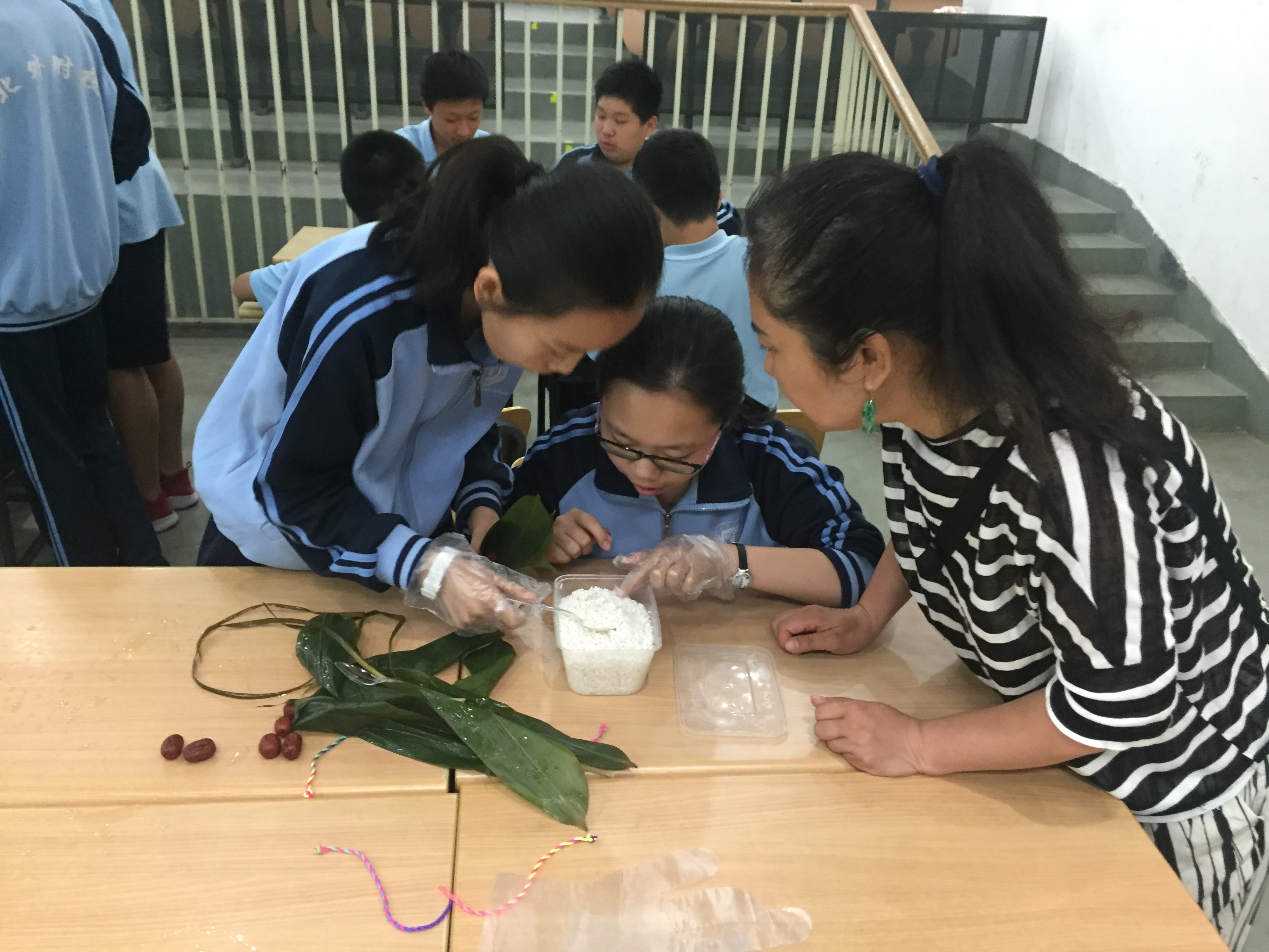 “清明插柳,端午插艾”端午节的风俗也是种类繁多,赛龙舟、佩香囊、悬艾、悬钟馗像、挂荷包、栓五色绳、点雄黄酒等,但最能代表端午节的还要属—“端午食粽”了。祝怡然同学的妈妈作为家长代表教授学生如何包出既美观又可口的”枣粽”。学生们认真听、仔细观、用心记,家长也悉心指导学生动作要领,每位学生“包”劲十足,纷纷展示自己的成果,露出自信的微笑,学生们在小组内也互相交流学习,看看谁包的既快又好。班主任最后用《离骚》中“路曼曼其修远兮,吾将上下而求索”这一经典名句勉励学生在学习的道路上不断求索,勇攀高峰,做最好的自己,发扬中华文化之精华,做弘扬中华文化的“小使者”。