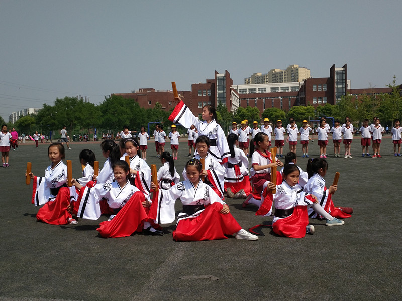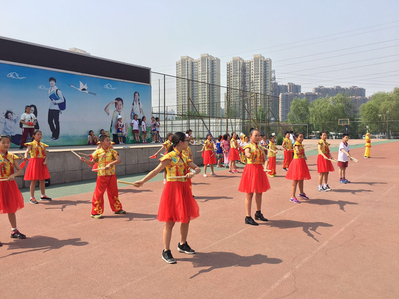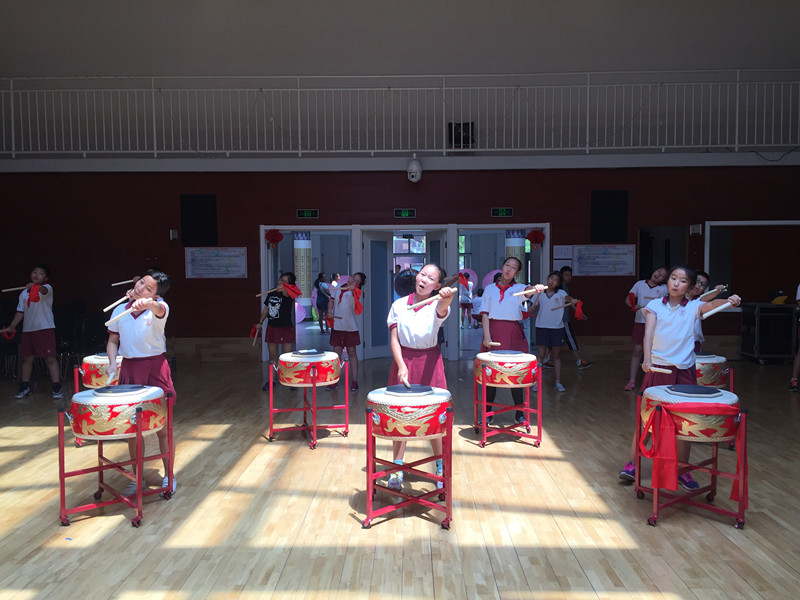 这是由25名高年级学生和1名音乐组教师组成的鼓乐队,他们用具有穿透力的鼓声敲击出迎接自己节日的喜悦,用帅气的动作表达对民族文化的热爱,一声声有力的鼓点为全校师生带来了活力与激情,一次次奋力地挥舞为弘扬中国传统文化带来了生机与活力。