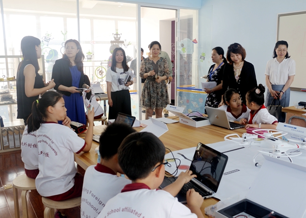 首先,科技教育工作评审专家组成员对目前学校科技教育的发展和积极建设“科技教育示范校”的各项工作给予了充分肯定。他们一致认为,近年来,学校领导非常重视学校科技教育工作的开展,在学校环境建设、科技教师队伍建设上投入大,并在校本课程体系建设上凸显了与我校复语特色的融合,学生参与各级各类科技竞赛活动的成绩有了较大提升。