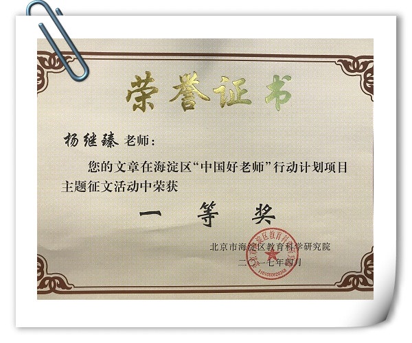 “中国好老师”项目——海淀区“讲述我的教育故事”征文一等奖