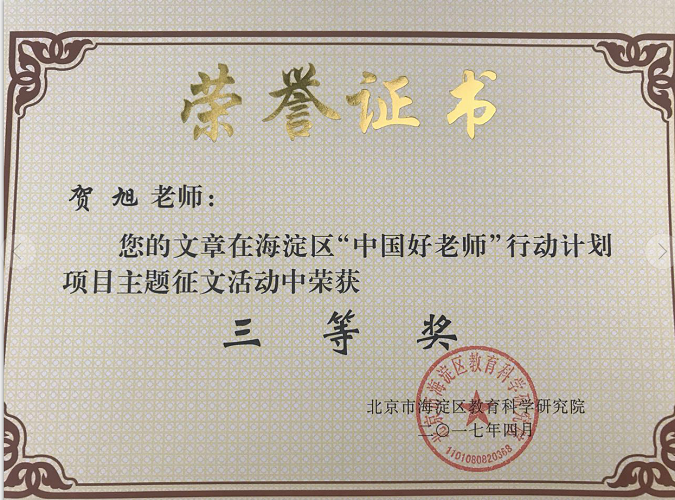 “中国好老师”项目——海淀区“讲述我的教育故事”征文三等奖