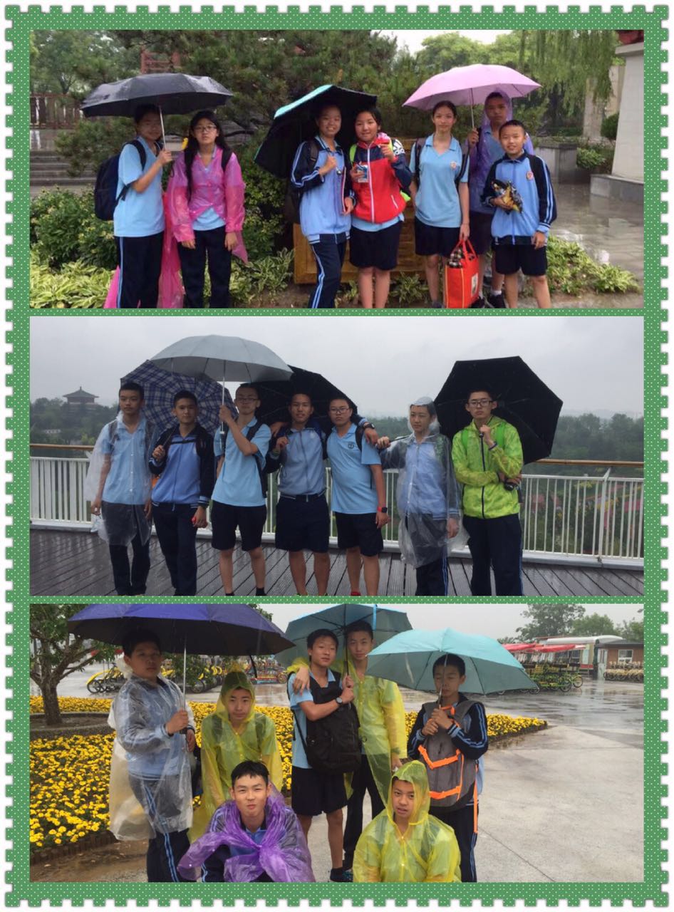 出发时天空还很平静,到达园博园后却开始天降大雨,虽然天空不作美,但同学们和老师的热情却不减。学校德育处也在第一时间做出了应急方案,将活动都引入到有遮雨效果的地点。随着活动的展开,雨势也逐渐弱了下来,仿佛置身于江南,捕捉春天最后的影子。学生们不仅欣赏了花团锦簇的花卉造型、还领略了迥异的人文景观。“江南园”的端庄秀气、“岭南园”的婉婷玉立、“西安园”的威严磅礴、“鄂尔多斯园”的炙热豪情。园内建筑各具特色,每一个展园都在讲述一段历史、诉说一份心情,同学们发出阵阵感叹。