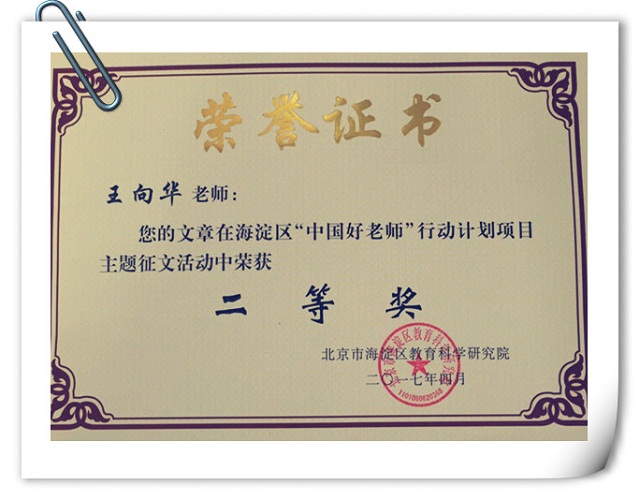 “中国好老师”项目——海淀区“讲述我的教育故事”征文二等奖