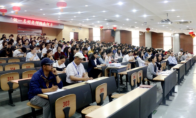 吴老师结合多年的教学实践经验告诉我们:身为教师,要牢记四个方面,即:在育人的过程中,要时刻保护学生的自尊心,自信心;在学习过程中要激发学生学习兴趣,保护好学生的好奇心;在与学生交往的过程中,要尊重学生个性,真诚交流;在学生成长过程中,教师要以身作则,潜移默化,帮助学生养成良好的学习习惯。吴老师指出:“有教无类是大爱,因材施教是智慧”。身为教师,既要懂科研,又要善教学,要努力创设“好吃又有营养”的教学课堂。她把自己的数学课称为“爱与美的旋律”,她的教学案例实实在在的告诉我们教学既要有温度(即研究学生)又要有深度(研究教学),要把学生看做是活生生的人,是发展中的人。同时强调到,好老师要教出人文精神,要做到人课合一。