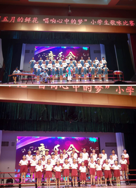 5月18日下午,我校四年级部以“ 五月的鲜花,唱响心中的梦 ”为主题的歌咏比赛在国瑞厅举行,音乐组的老师担任了本次比赛评委。