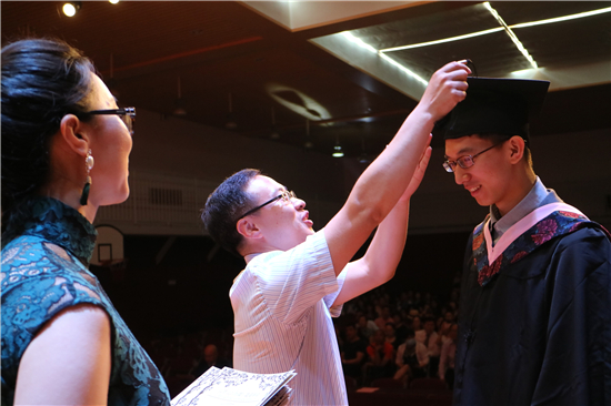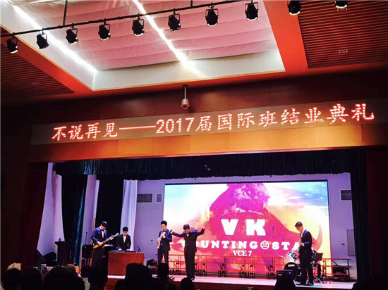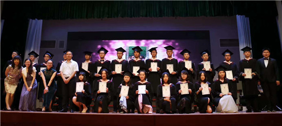 2015年5月19日上午9时,我校为2017届VCE/PGA班举办了结业典礼。高中校区校长高雁鸣、副校长王静、校区领导、国际班任课教师、学生及家长共同参加了本次典礼。典礼由郭薇、沈林溪、胡啸远和何泽宇主持。典礼由家长的寄语和一段回顾这四个班级两年来的附校经历开始。高校长致开幕辞,回顾了两年来学生在我校的学习和成长,提出了未来的展望。接着,学生代表、学生会主席唐珂然同学发言,总结四年来学到的知识与技能,深切表达对学院领导、老师的感激之情和对同学、朋友的不舍之情,以及在国外开始下一段人生旅程的坚定信心。每一位演讲者的精彩话语都深深感动着在场的每一位师生,赢得掌声阵阵。接着,由校区领导们为每位学生颁发结业证,进行拨穗仪式。最后,在全体学生在国歌声中庄严宣誓,铭记母校的教诲,维护祖国的荣誉。