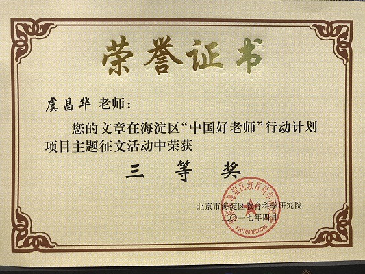 “中国好老师”项目——海淀区“讲述我的教育故事”征文三等奖