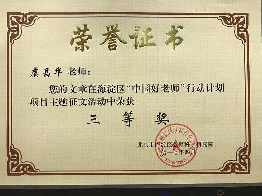 “中国好老师”项目——海淀区“讲述我的教育故事”征文三等奖