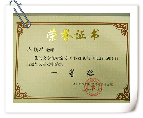 “中国好老师”项目——海淀区“讲述我的教育故事”征文一等奖