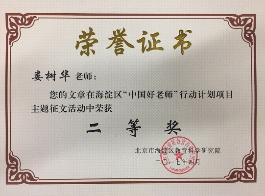 “中国好老师”项目——海淀区“讲述我的教育故事”征文二等奖