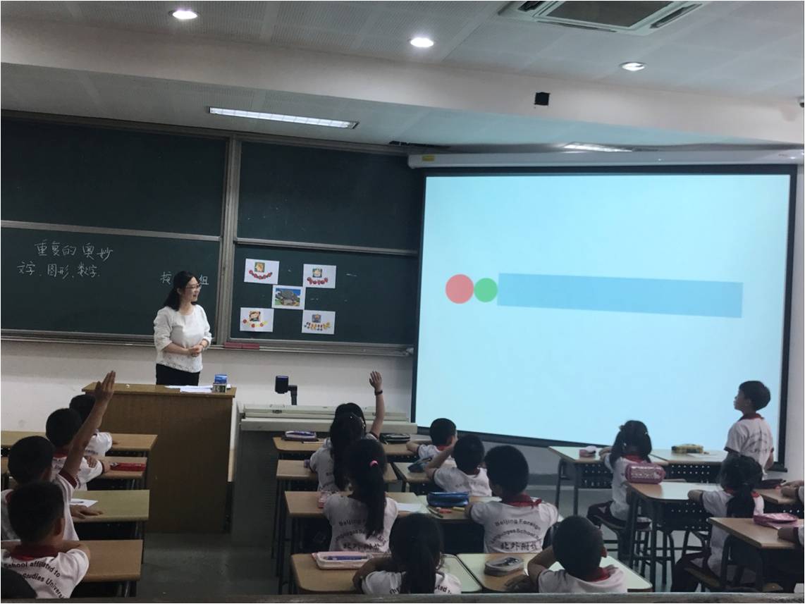 为促进校际间的沟通,提升数学教师专业成长,2017年5月15号,北外附校与西二旗小学数学团队进行了第一次数学联合教研活动,活动主要内容为两节研究课:北外附校杨洋老师的《重复的奥秘》,西二旗小学孙燕慧老师的《回收废电池》,课后两校教师针对两节课进行了充分的研讨和交流。