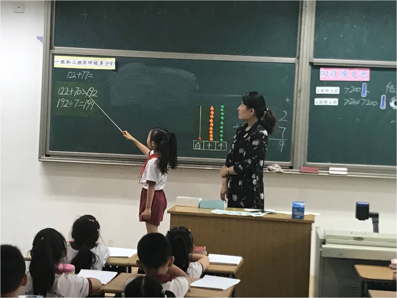孙老师虽然教学时间不长,但教态亲和、稳重,课堂结构清晰,借助模型与竖式进行沟通,帮助学生理解算理,并善于用不同的形式鼓励学生,课堂氛围活跃。