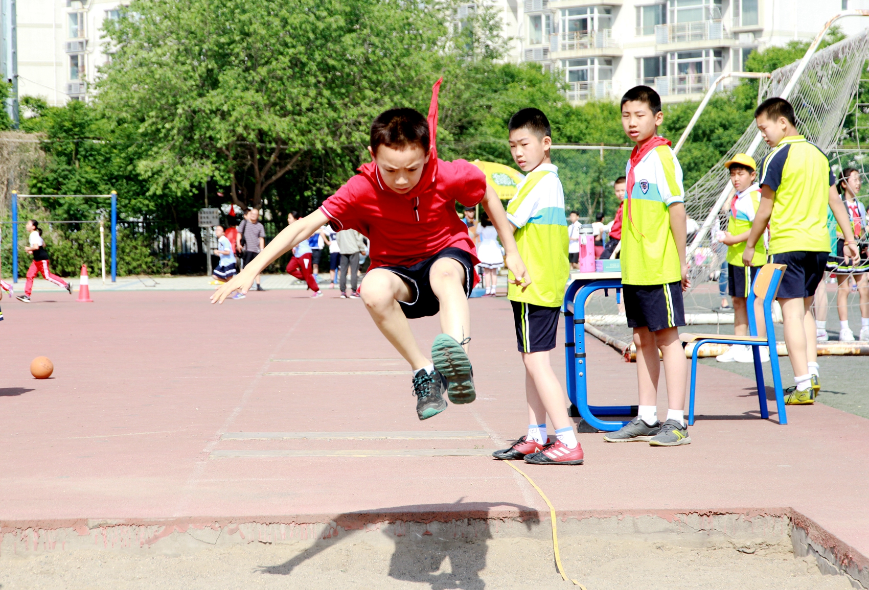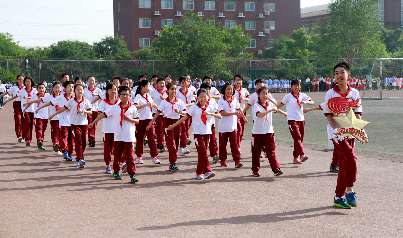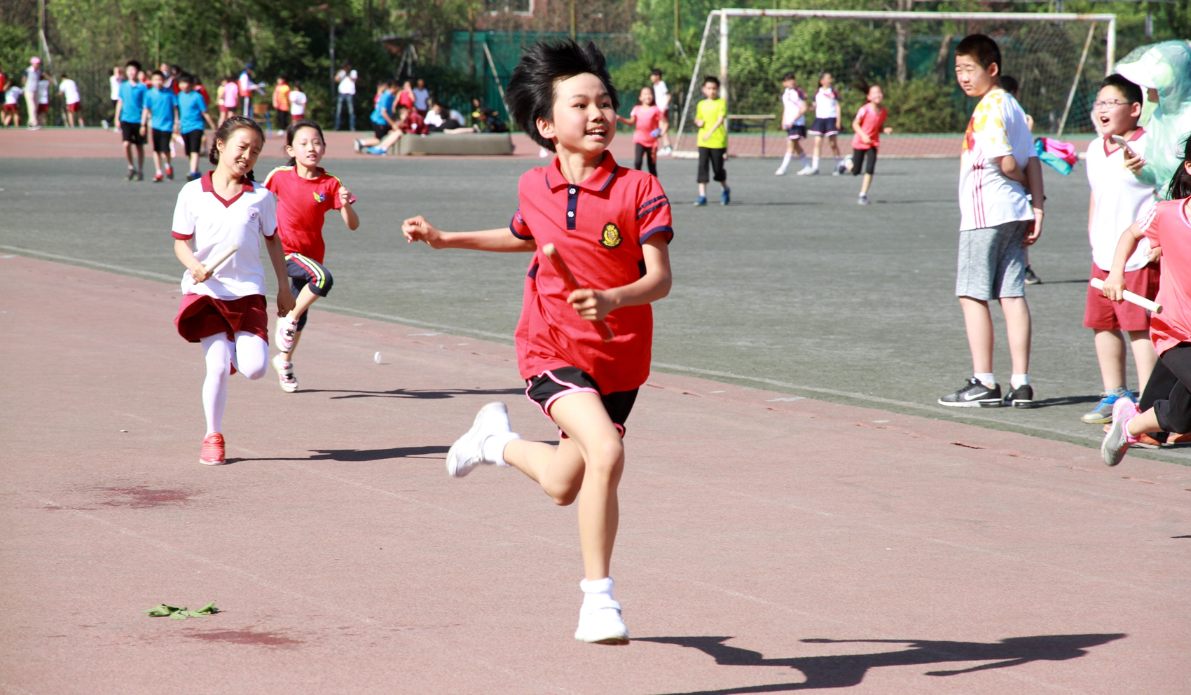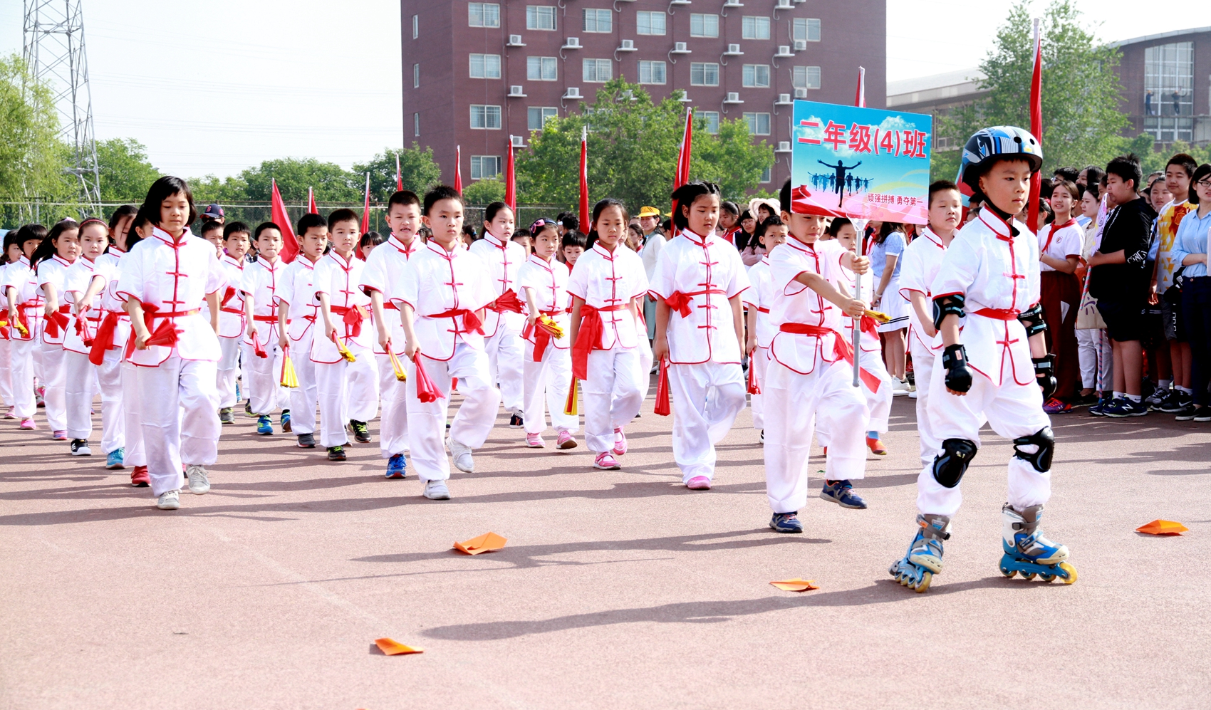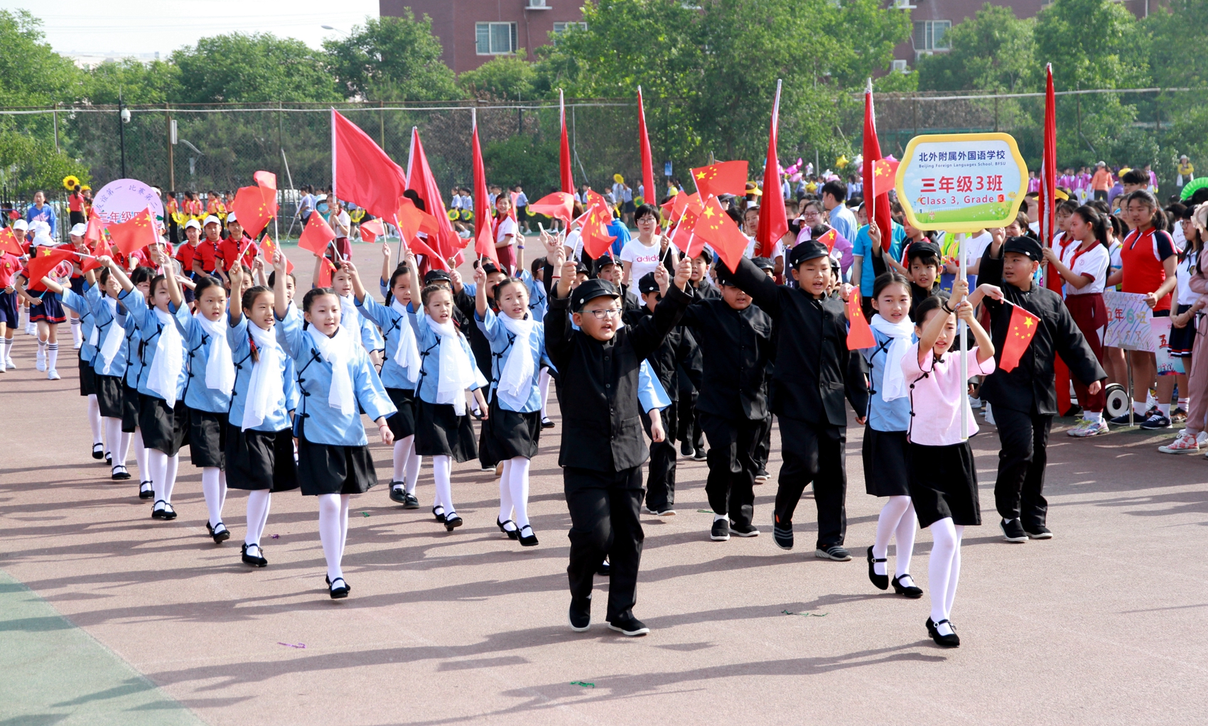 林卫民宣布:北外附校第十届小学生春季田径运动会正式开始!发令枪响,整个赛场顿时沸腾起来。