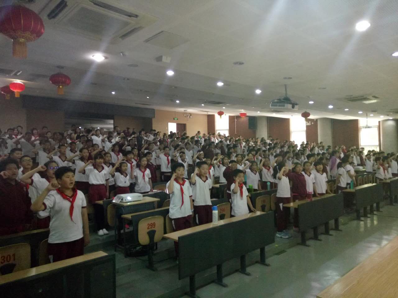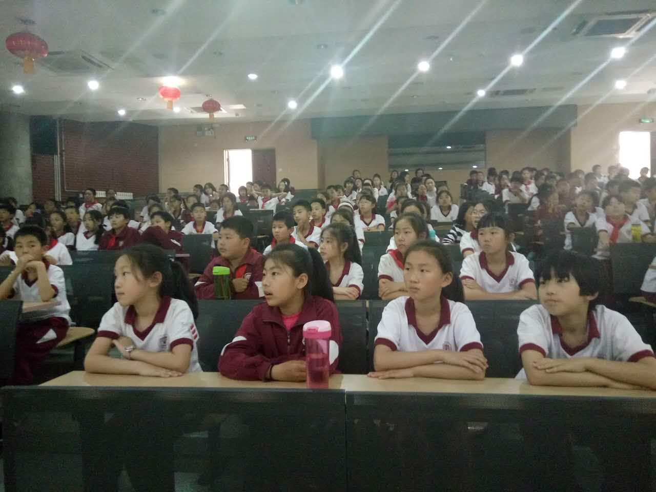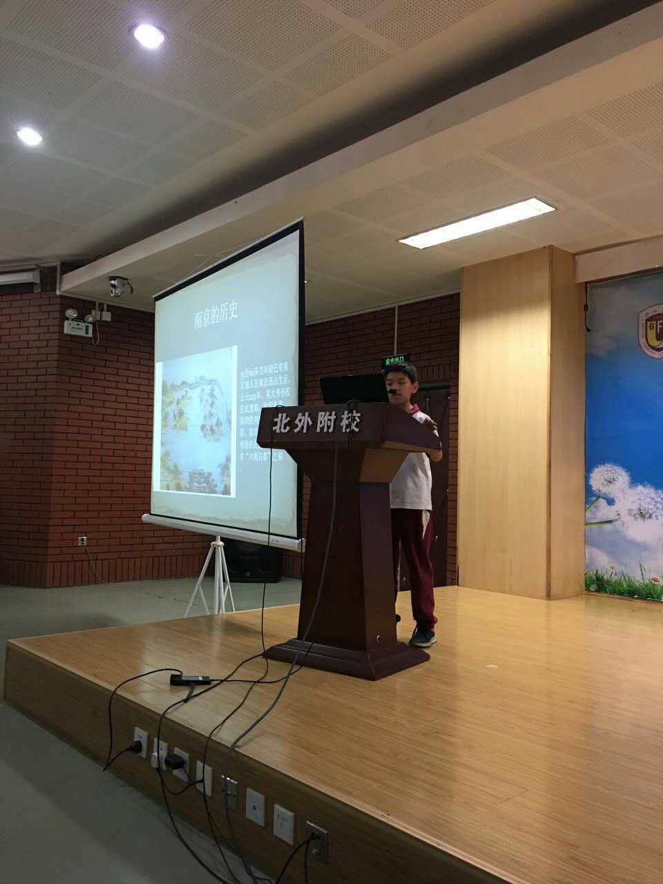 “可以宽恕,但不能遗忘......”在南京除了中国文化需要我们一代代传承下去,“南京大屠杀”的惨案也是我们不能遗忘的记忆。王忆耕以一名新时代小学生的视角,用最朴实的语言和大量的史实照片向所有同学讲述了在日本侵华战争中我们国家曾经遭受的迫害,他提议四年级全体学生齐诵《少年中国说》,尽自己的力量让我们的国家强大、富有,不再任人欺凌!