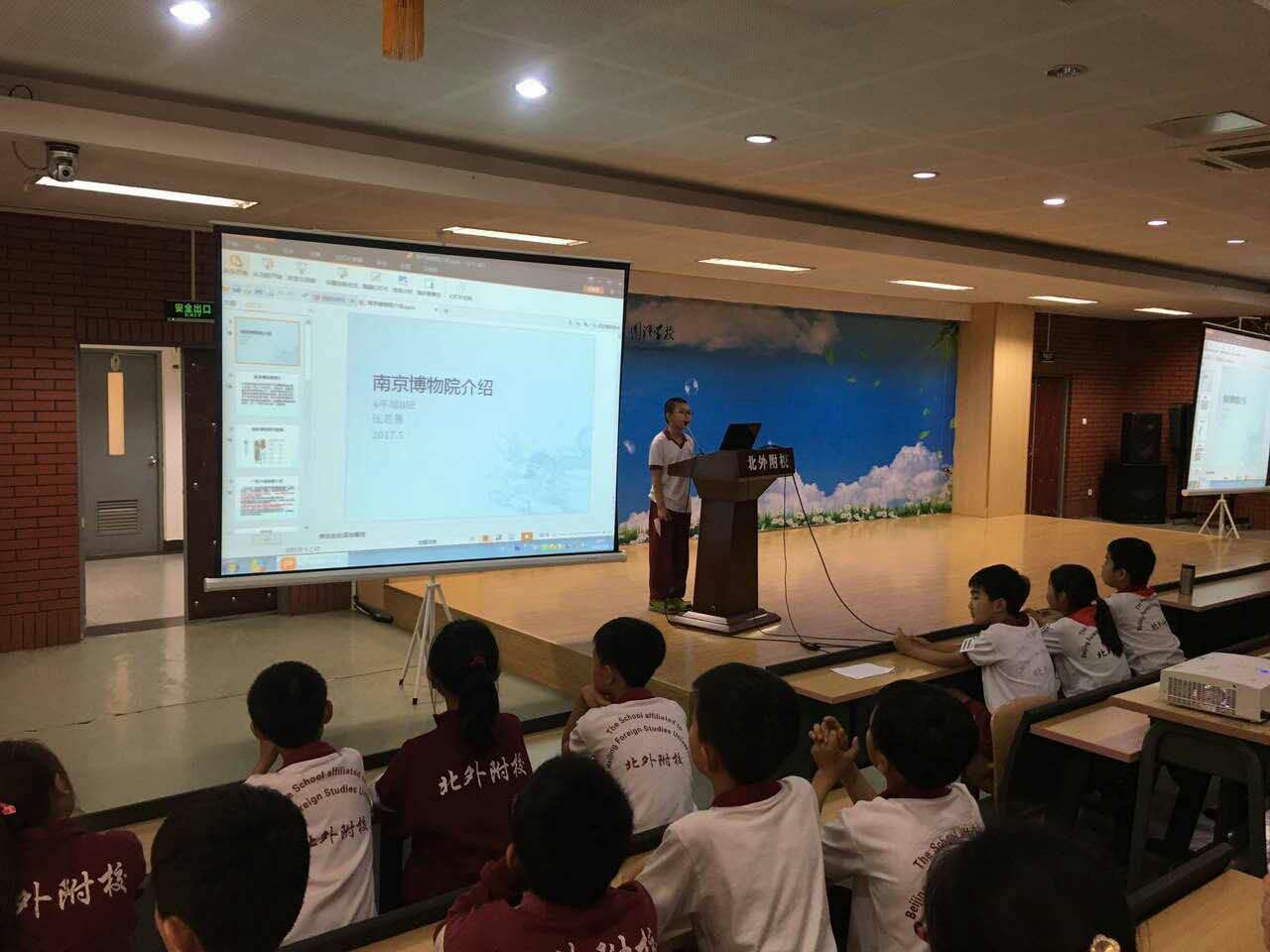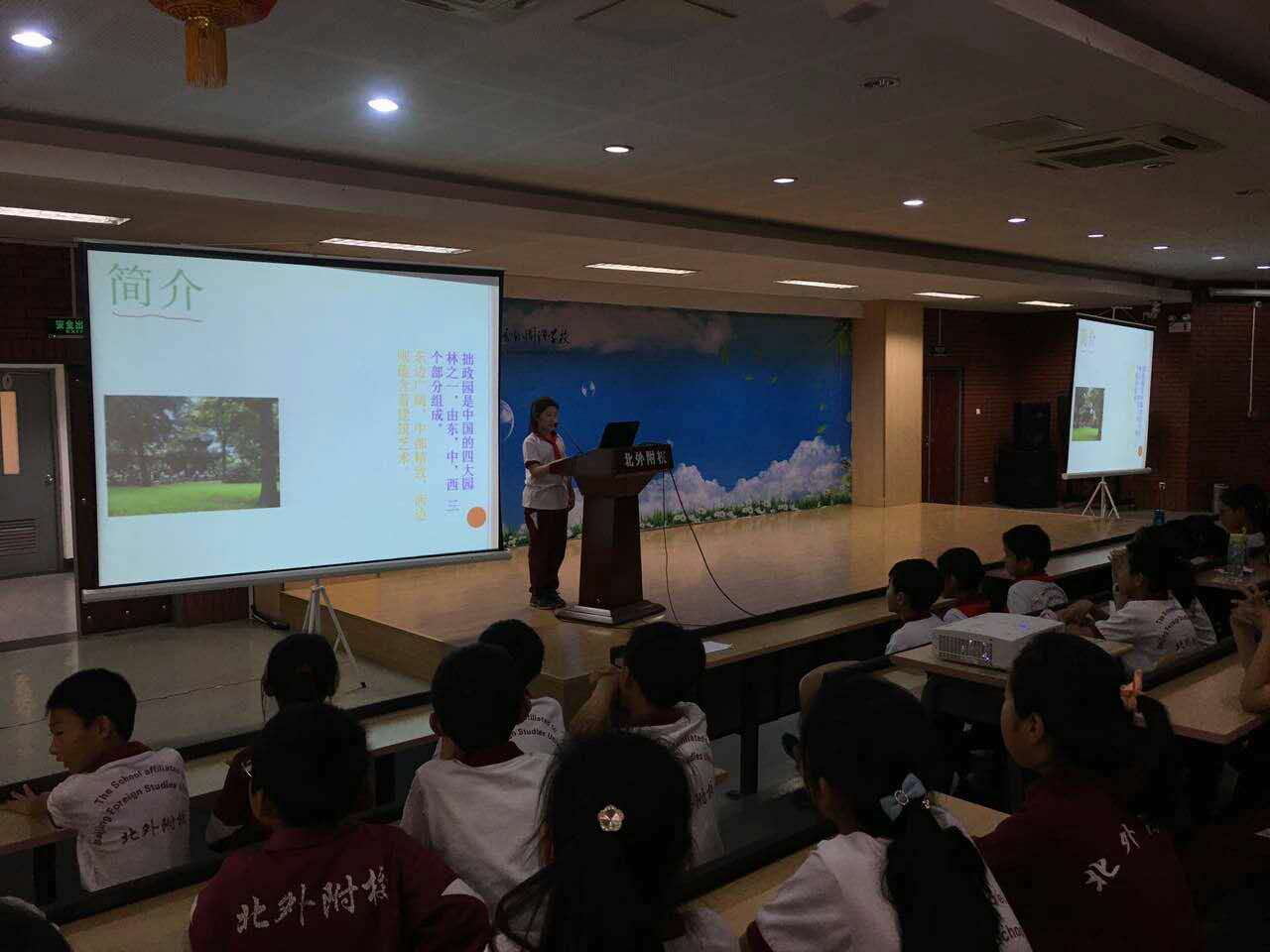 侯烨重点为大家介绍了杭州“西湖十景”的美妙之处和命名艺术,在他的口中“西湖十景”,景名合一,令人如临其境,如见其形;胡馨予眼中的木渎古镇景色秀美,更重要的是它被称为“汉族传统手工艺作品之乡”,泥人、刺绣、雕玉、银器......各种各样的手工艺作品让学生赞不绝口;拙政园是中国四大名园之一,金鑫同学主要为大家介绍了名字的由来、院中的建筑、东中西三园的分布;南京博物院是张若愚同学最感兴趣的地方,它是“一院六馆”的格局,即历史馆、特展馆、数字馆、艺术馆、非遗馆、民国馆。