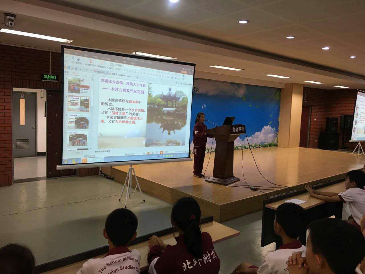 江南,一个让人心旌摇曳的历史文化盆景。这里山青水秀、人杰地灵、文明悠远,是中国最具特质与魅力的独特之地。5月9日中午,研学归来的学生代表向四年级全体学生介绍了他们眼中的江南,讲述了此行他们的收获与感想。
