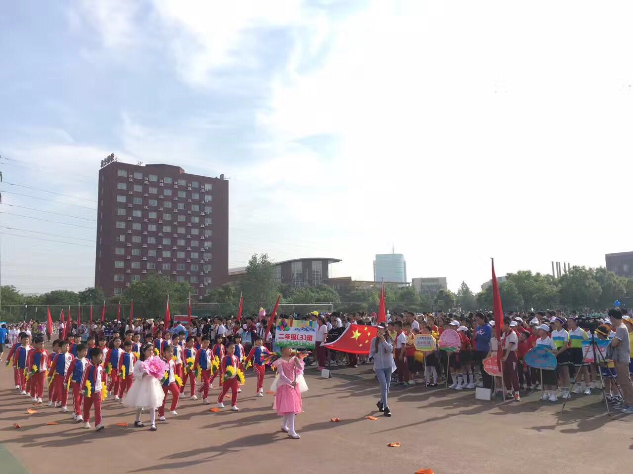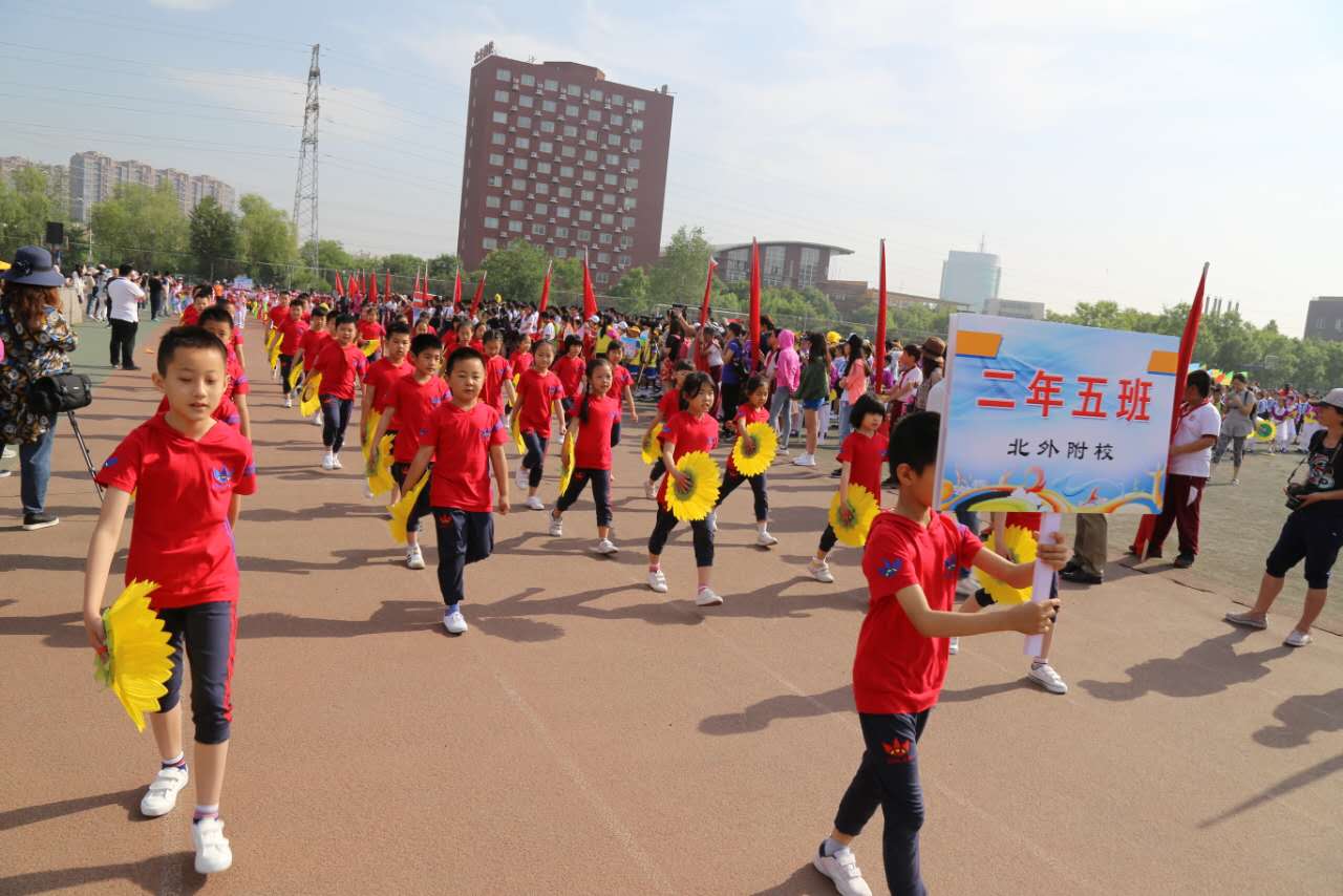 5月10号,春风拂面,朵朵白云衬托着湛湛蓝空。北外附校的操场上彩旗招展,标语飞扬。2017年小学生秋季田径运动会也在这喧天的锣鼓声中拉开了序幕。