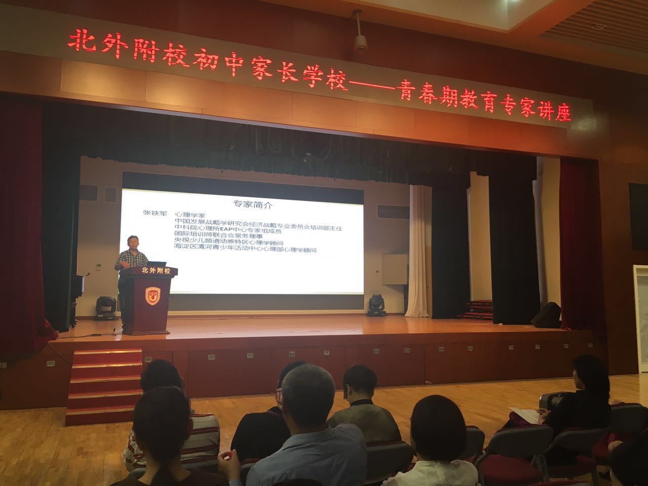 讲座由初二年级组长张霞老师主持。本次家长会特邀海淀区青少年活动中心专家张铁军老师为家长们带来“焦点解决法—学会与孩子沟通”的心理主题讲座,张老师带领家长们剖析案例,掌握处于青春期孩子们的心理动态,与孩子形成和谐、稳定的亲子关系。杨磊校长随后向家长们解读了新中考的变化以及选课的情况,杨校长期冀家长和学生们能够精准选择、突出优势、努力备考,在新中考中取得新突破。