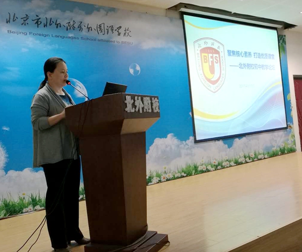 张继军作了总结讲话。她首先充分肯定六位教师的精彩发言,同时对教研组在教师专业发展方面所取得的成绩给予了表扬。张继军要求全体教师把握住核心素养的实质就是“培养什么人、怎样培养人”,要以促进“学生发展”为核心开展教育工作。她要求教研组、备课组要结合具体课例开展教学研究,老师们要进一步提高课堂教学有效性,在培养学生的学科核心素养上下功夫。