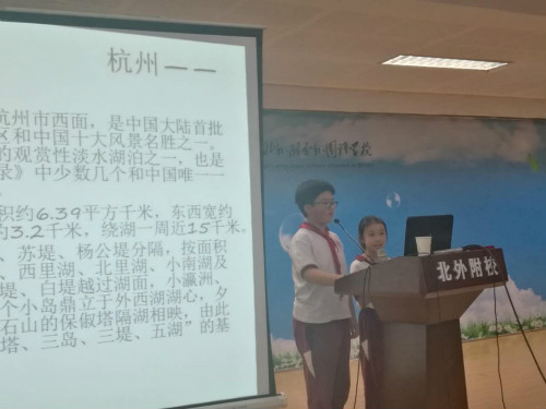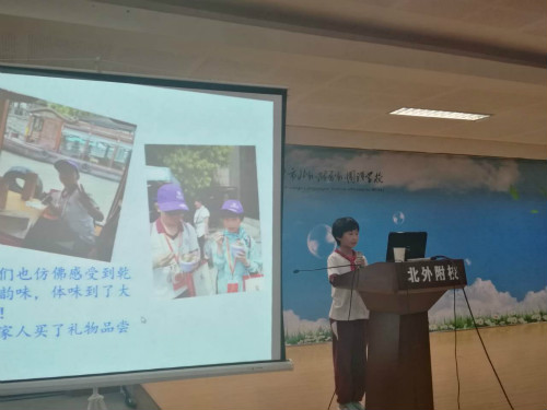 有的孩子在随记中写道“我真实感受到自己此行颇有收获,江南风景美如画,就像诗词中描写的一样美!我更有兴趣好好体会古诗词中的意境了!”有的孩子写道“通过研学活动我更加真实的了解到侵华日军的罪行,让我们铭记历史,每个人都努力尽自己的力量使我们的国家更加强大、富有!”还有的孩子写道“特别感谢老师们的辛苦付出,您们辛苦了!”孩子们表达的真情实感,也正是此次研学活动的意义所在,台下的孩子也被这精彩的汇报所吸引。