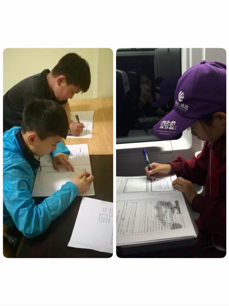 火车上、酒店里、景区中,孩子们迫不及待的对每日的所见所闻进行记录,一到酒店,孩子们就用电子设备检索着当天游记的知识要点,了解下一行程的历史背景,处处都是学生们学习的身影。孩子们说:最好的课程在路上。真是的确如此啊!