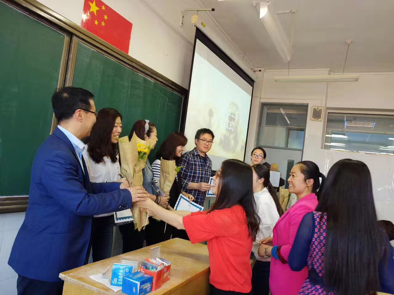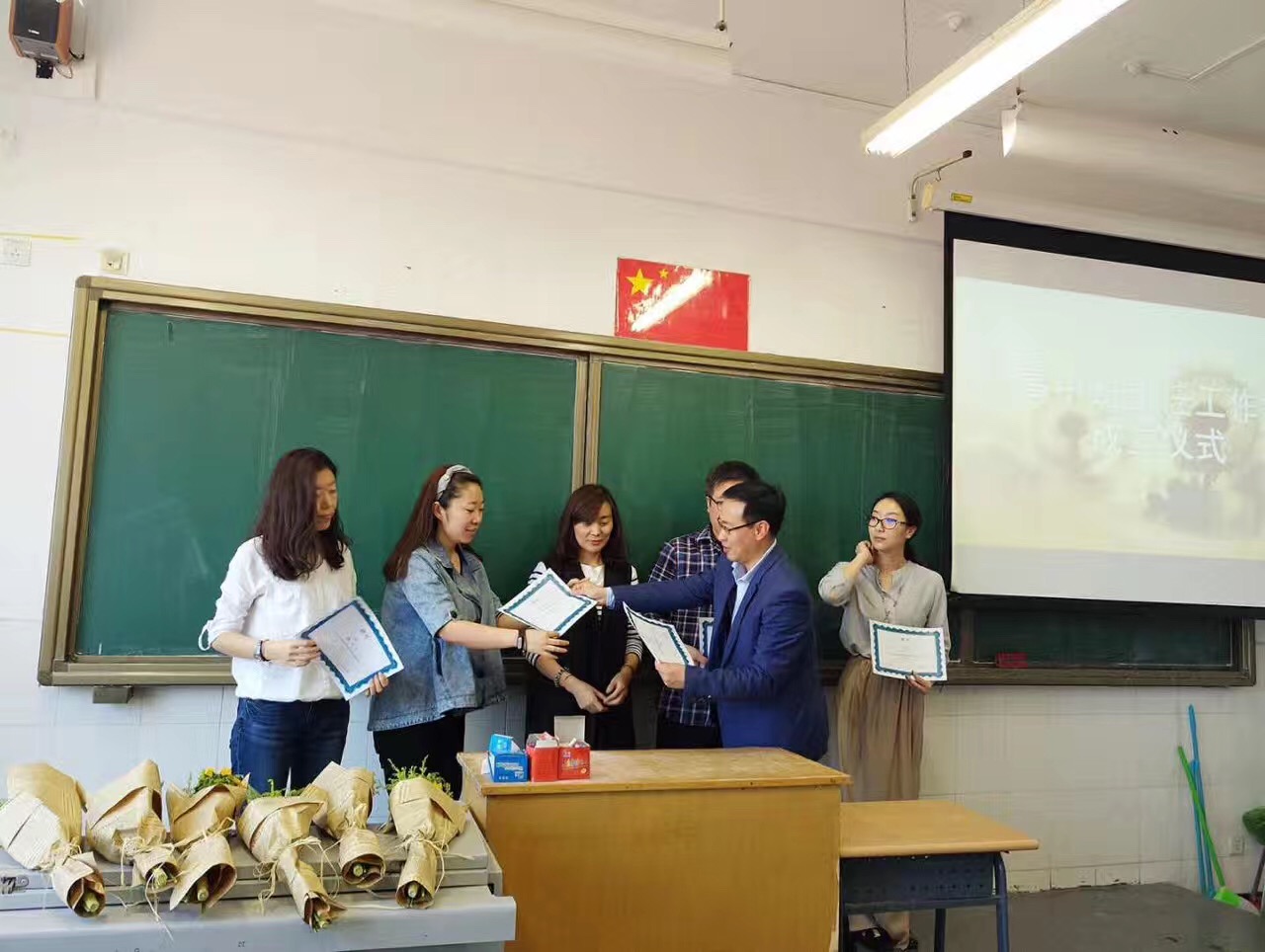 刘志欣宣布了首批班主任工作室成员名单和师徒结对名单,高雁鸣为工作室成员颁发聘书,并由学员代表为师傅献上鲜花。