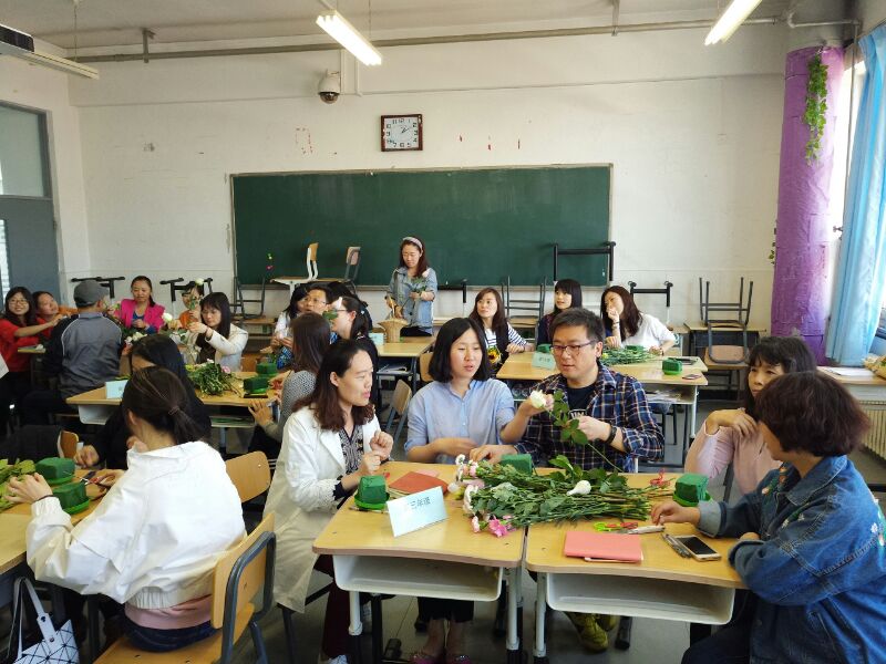 随后开展了插花活动。每位班主任发挥自己的智慧和灵感为班级教室创作一个插花作品。担任工作室成员的班主任也与自己的新任徒弟共同进行创作,在第一次小组活动中加深了解,增进交流。
