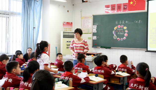 此次督导活动分为听评课和座谈两个部分。首先由小学三年级黄薇薇、一年级于苗苗两位老师分别执教《我喜爱的 (水果)》(习作指导课)、《池塘边的叫声》。黄薇薇以《我爱故乡的杨梅》一文为蓝本,引导学生感悟作者描写水果形状、颜色、味道的写法,再结合自己对水果的观察进行仿写练习。黄老师的课充分体现了我校语文教研组在本学期开展的“‘理解’与‘运用’并重的阅读教学”课题研究中的探索。于苗苗老师结合一年级学生认知特点,注重教学趣味性。巧妙运用“情境教学”策略,从板书、导语等方面创设青蛙与小鱼的故事情境,激发学生走进文本,感受角色与文字的魅力。教学设计层次清楚,学生在轻松愉悦中识字、朗读、体验,参与热情高涨。