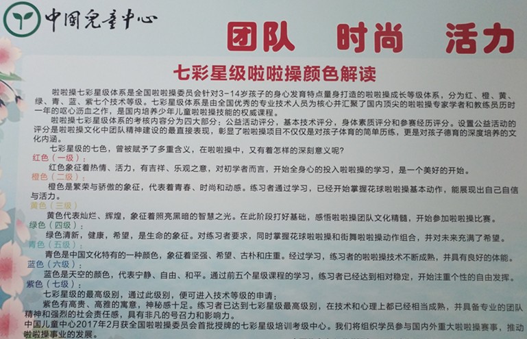 4月20日,21日于中国儿童中心体育馆进行的培训由北京市啦啦操委员会的胡娟娟老师主持,中国儿童中心主任周莉,全国啦啦操委员会景观老师、周立红、赵海波等人出席,近百名学员参加,主要围绕啦啦操二级教练员、裁判员培训班 暨啦啦操七彩星级运动员教学进行。我校曹云、赵立芳两位教师不负学校之信任,培训中认真刻苦,了解了啦啦操项目的起源、发展与展望,掌握了各培训内容,顺利通过了各项考核,为今后我校啦啦操运动的普及与推广及啦啦操校队队员的培养与训练奠定了夯实的基础,并为5月20日、21日进行的啦啦操裁判员培训开了好头。